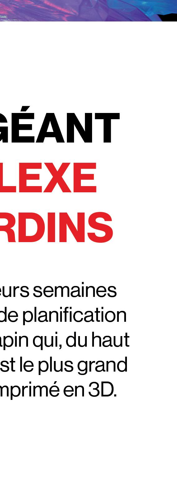 Entièrement articulée, l’impression 3D en TPU a permis de créer des modules flexibles et légers, facilitant ainsi la manipulation pour les nombreux artistes et acrobates dissimulés à travers la structure.