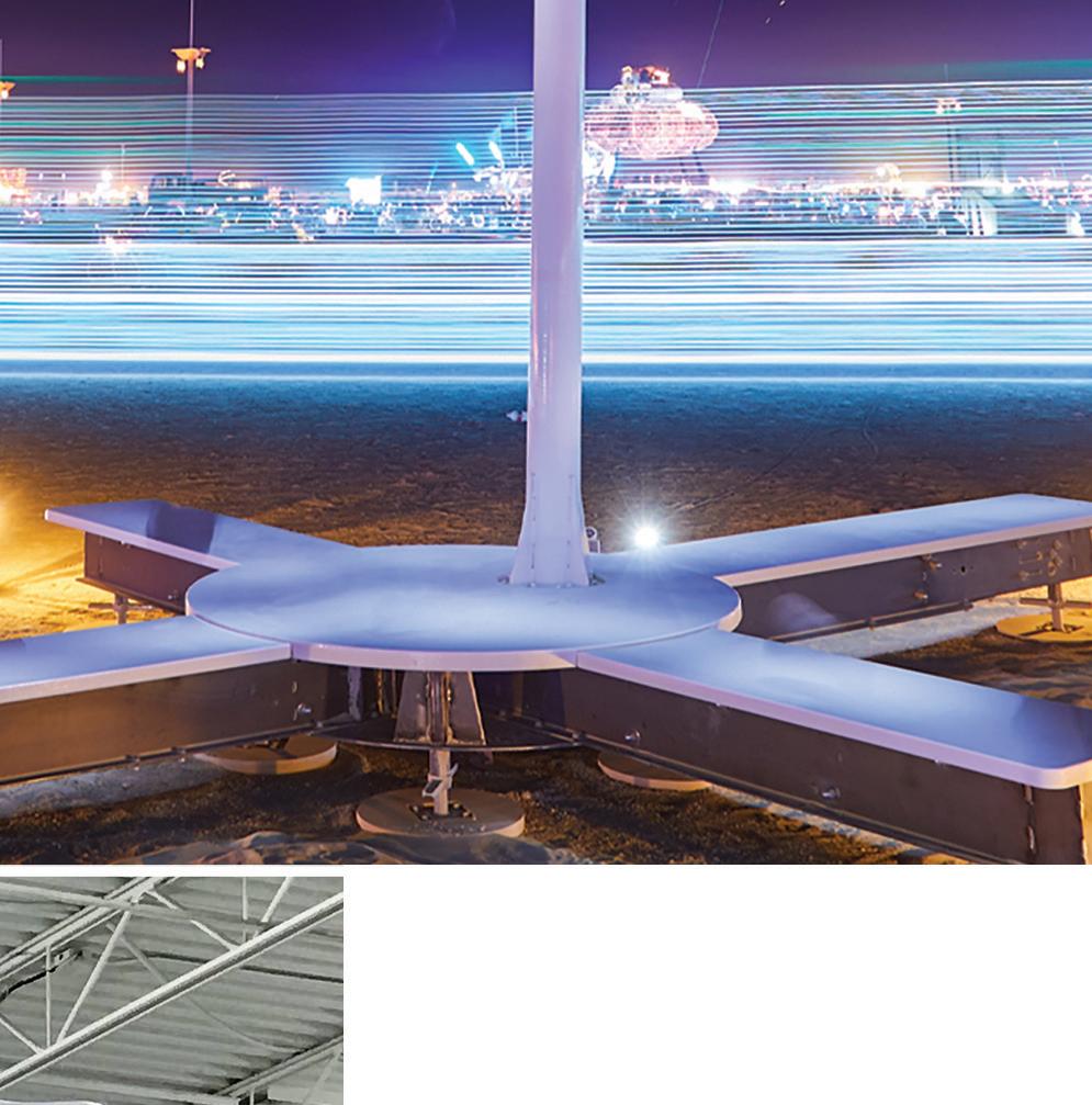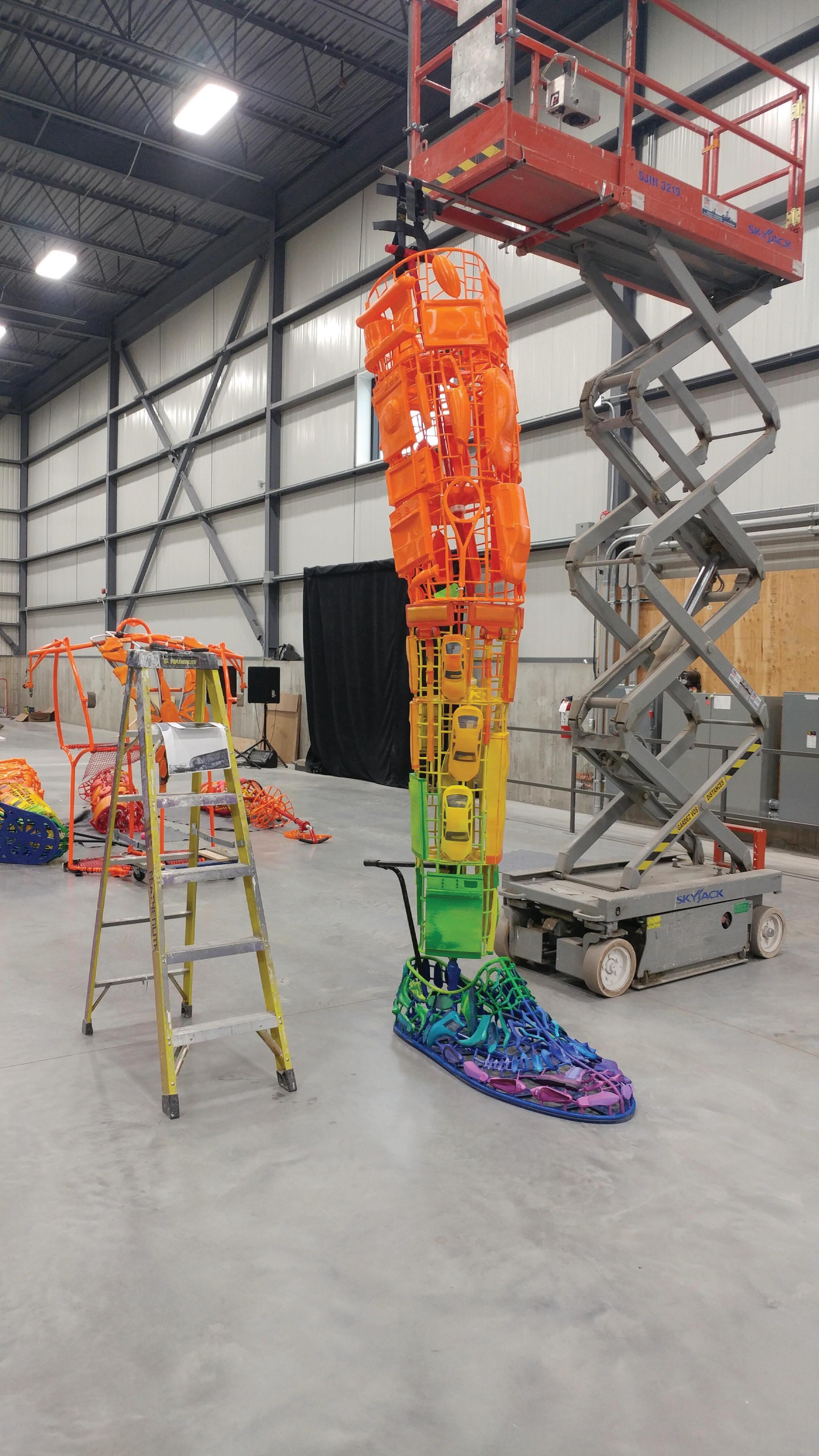 Conception, ingénierie, fabrication et installation d’une structure totalisant 38’ de hauteur et faite de fibre de verre.