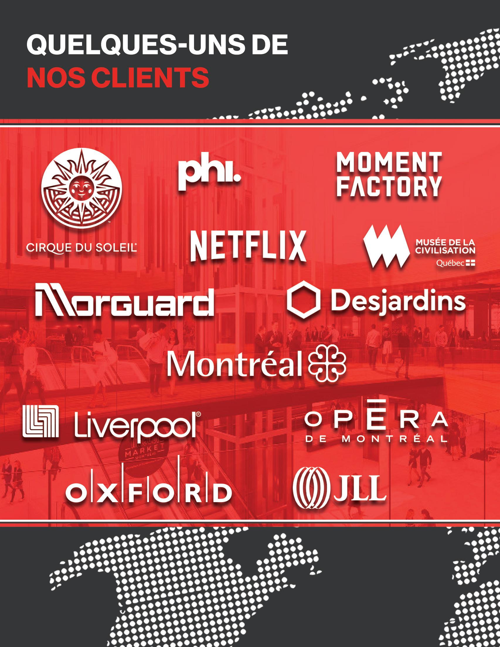 Riche de plus de 30 ans d’expérience aux côtés des leaders de l’industrie au Canada, aux États-Unis et au Mexique, nous apportons une expertise inégalée en matière de co-création. Nous forgeons des partenariats étroits avec nos clients, travaillant main dans la main pour développer un contenu unique pour chaque projet.
