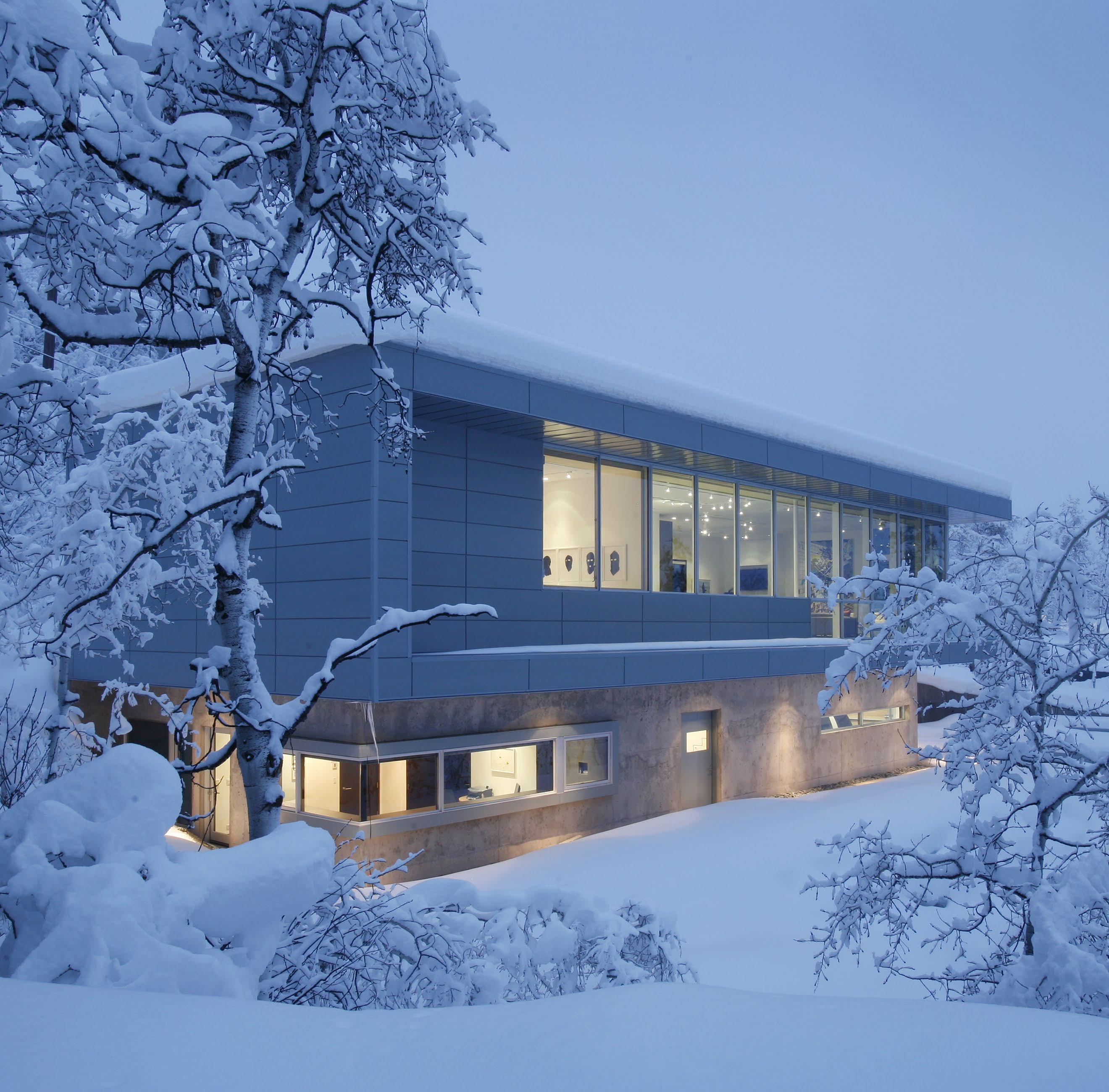 The Scholl house takes its cues from the 1950’s ‘Case Study’ architectural house series and resists the prevailing mountain vernacular The steeply confined site posed challenges with excavation, topography, drainage, restrictive easements and was required to address strict subdivision design covenants. The clients are avid collectors of videography and photography and requested a design solution that could exhibit their expanding and revolving collection