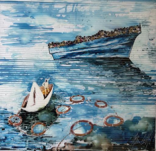 I started painting in 1964 following the modern figurative current. Since 1986 I have undertaken a professional artistic career. My techniques are watercolor, acrylic, ink, graphics, oil, enamel on glass and mixed media. My painting is a representation free from any scheme, from any pre-established form or model, immediate in its execution and spontaneous. Everything is generated by caressing or violent gestures depending on my state of mind with which I create the work that tells about itself and about the way it was created. Well-known national and international art critics consider my watercolors and my inks, enriched with enamels on glass, particularly evocative and executed with considerable skill. I love nature so I am extremely indignant when its laws are violated and its destruction is attempted. Listing all the works dedicated to this theme would be impossible. All the wars that continue to plague humanity, despite the traumatic experiences of two world wars, for the first time in history, total wars as they are no longer just clashes between armies but involve defenseless civilian populations. The two works "Kaos 1" and Kaos 2 are exemplary, emblematically representing a destructive effectiveness of every conflict, dehumanized and aimed at a destiny of death of a dispersed and dismayed humanity. Specifically for the then “Gulf War”, I intended to create the work “ESTASIS BEYOND THE GRID” which depicts love beyond any tyrannical human manifestation.