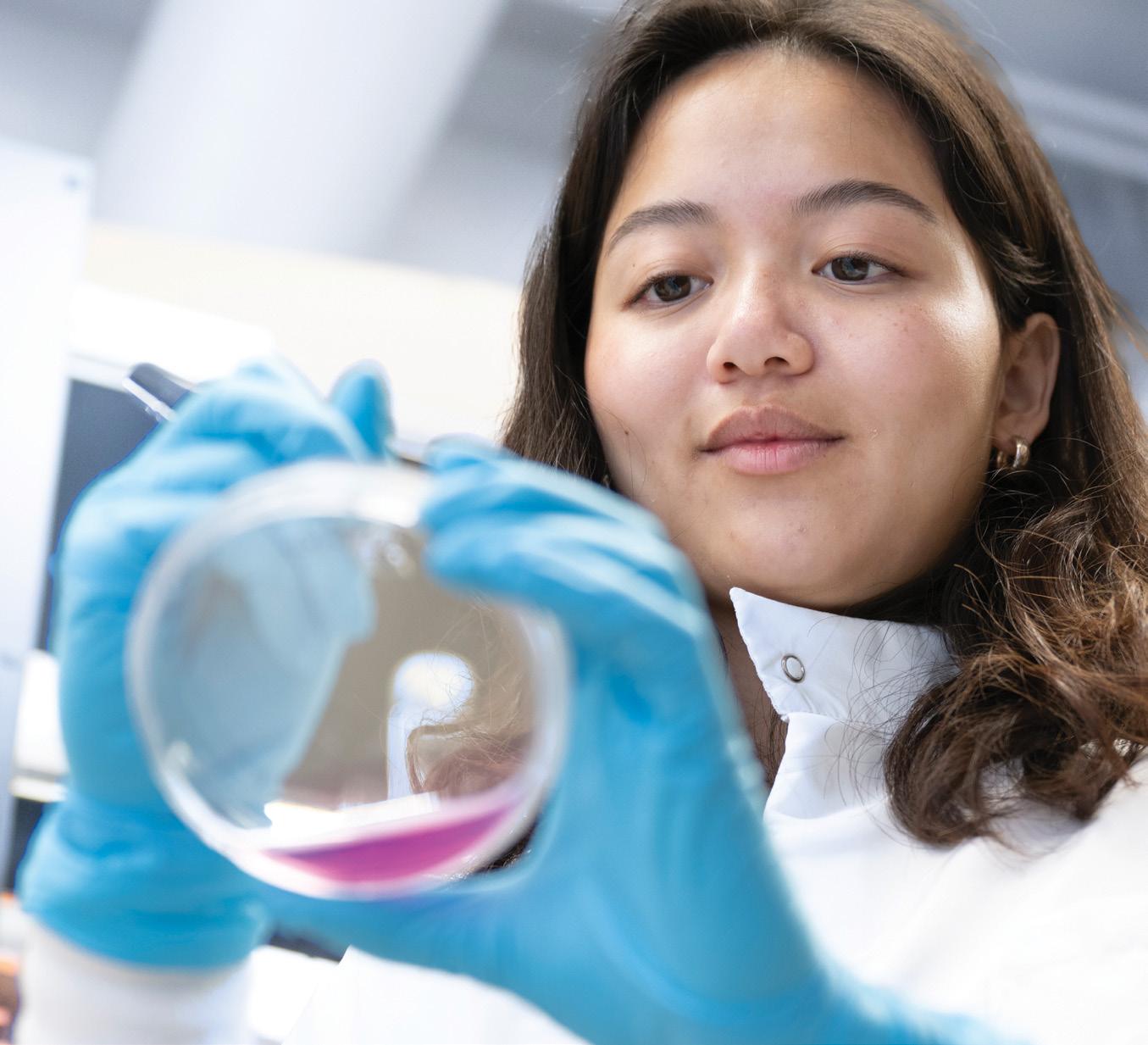 The society’s programming reflects that vision. Members gain hands-on opportunities through career workshops, panel discussions, and innovationdriven events such as New Member Pitch Night and the AI & Sustainability Case Competition. These experiences give students the chance to test ideas, collaborate across disciplines and prepare for the fast-changing biotech landscape. Duong, who earned a BS in Pharmacology and Drug Development and an MS in Management of Drug Development, is well on his way to a career in toxicology. Nguyen is now pursuing her Master of Public Health degree while