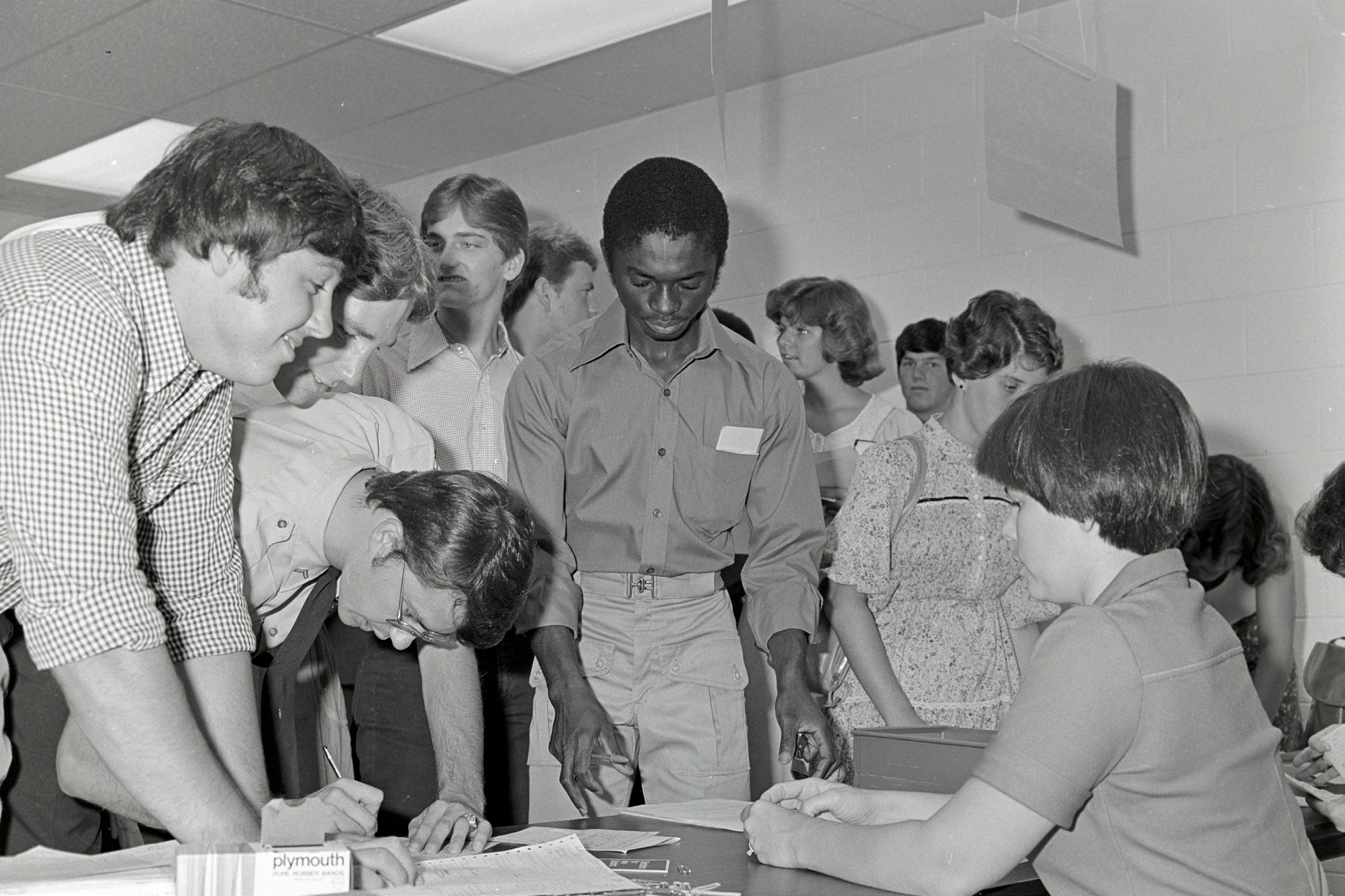 June McHaney – The summer before moving to the mountain, Dr. Falwell was on TV every week telling students to come to Liberty. So, the student body is growing and all I see is red dirt and shells of buildings slowly going up – no finished classrooms. As the students arrived, the carpenters were putting finishing touches on the dorms. They worked at night to complete some classrooms in time for the 1977 fall semester.
