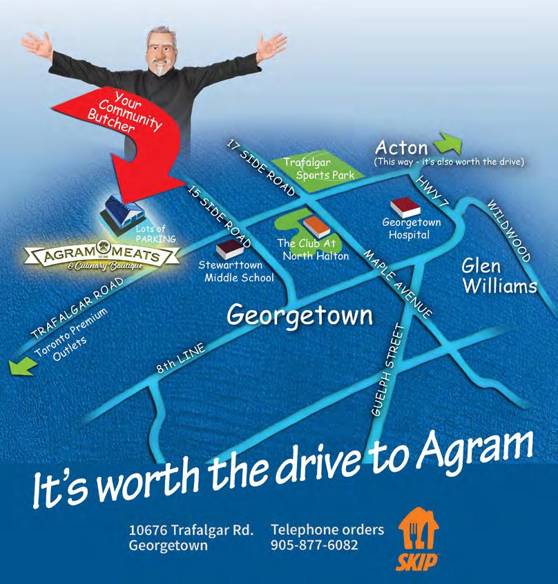 Agram Meats is a Halton Hills business offering fresh, locally sourced, provincially certified, high quality meats and specialty foods from their international culinary boutique. These differentiating attributes, along with sustainability and friendly customer service, needed to be promoted throughout the region in order to support loyal customers and attract new prospects looking for something better.