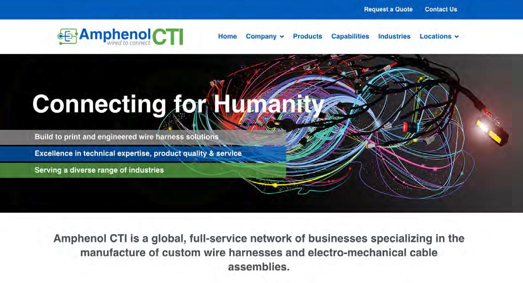 Amphenol CTI is a global, full-service network of businesses specializing in the manufacture of custom wire harnesses and electro-mechanical cable assemblies for a wide range of industries. Appreciating the CA14 experience in their marketplace, the marketing department came to us with the challenge of redeveloping the website with fresh creative to reflect their impact on industries and people.