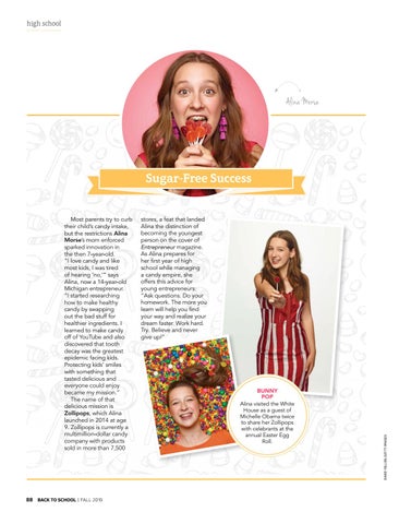 Most parents try to curb their child’s candy intake, but the restrictions Alina Morse’s mom enforced sparked innovation in the then 7-year-old. “I love candy and like most kids, I was tired of hearing ‘no,’” says Alina, now a 14-year-old Michigan entrepreneur. “I started researching how to make healthy candy by swapping out the bad stuff for healthier ingredients. I learned to make candy off of YouTube and also discovered that tooth decay was the greatest epidemic facing kids. Protecting kids’ smiles with something that tasted delicious and everyone could enjoy became my mission.” The name of that delicious mission is Zollipops, which Alina launched in 2014 at age 9. Zollipops is currently a multimillion-dollar candy company with products sold in more than 7,500