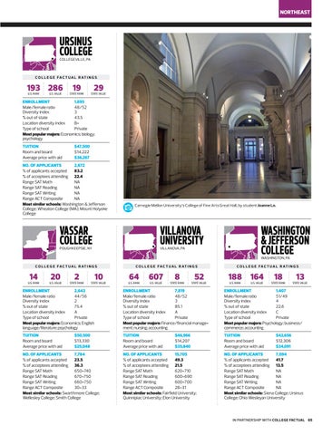 ENROLLMENT 1,407 Male/female ratio 51/49 Diversity index 4 % out of state 22.6 Location diversity index C Type of school Private Most popular majors: Psychology; business/ commerce; accounting