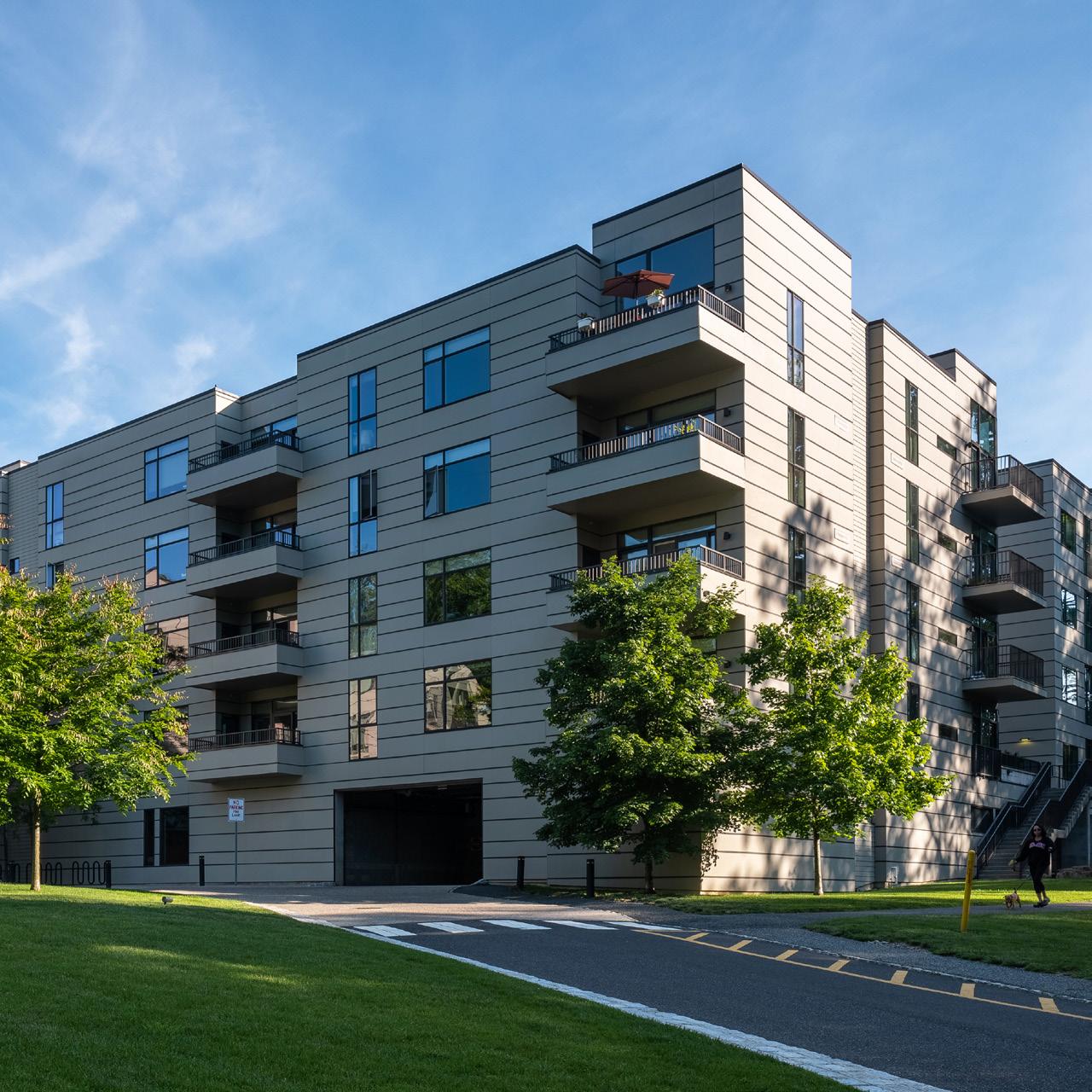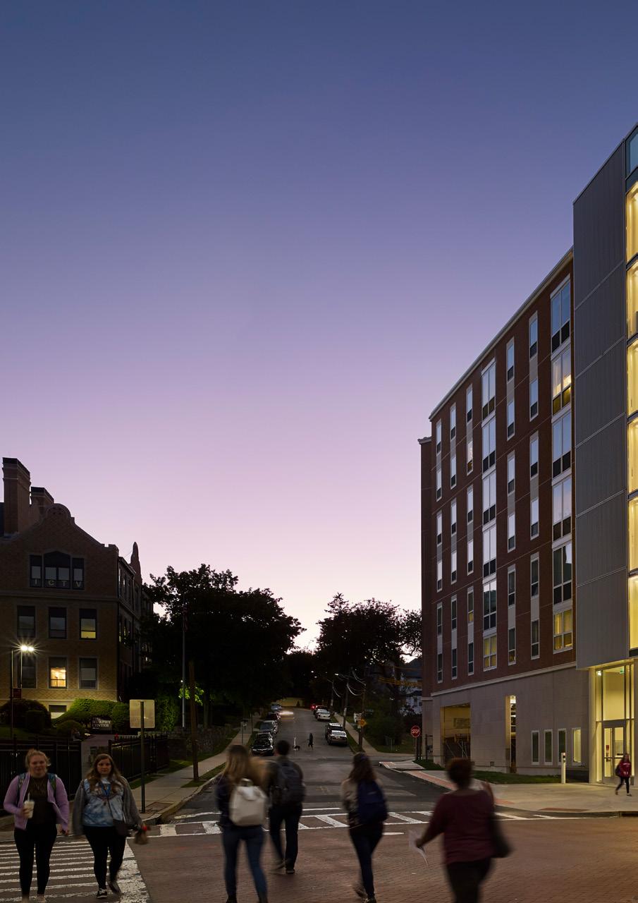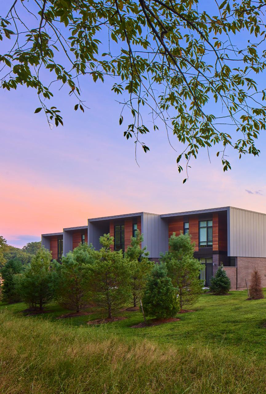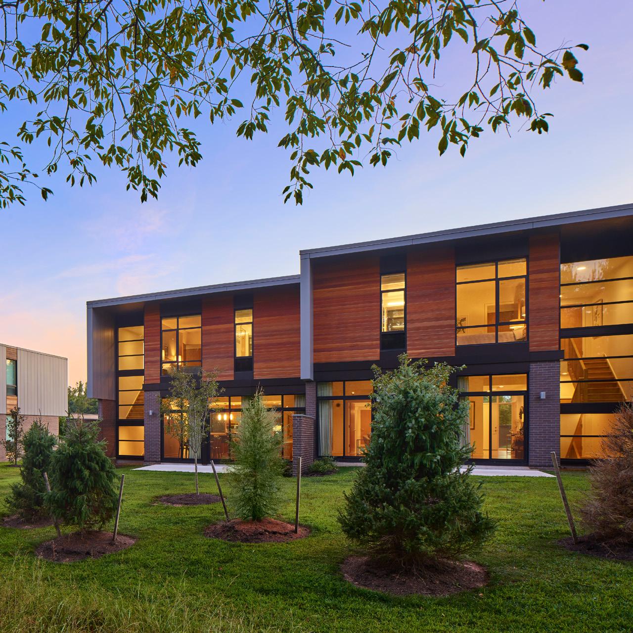 During phase one, eight faculty townhouses of approximately 3,000 square feet each were built at a total cost of $6.7 million. Each building has a full basement, patio, two aboveground living floors, and a groundlevel two-car garage. The ground floor comprises a living/dining room in an open-floor concept with a walk-out raised deck. The second floor has three bedrooms and two full bathrooms. Each townhouse has an elevator. Phase two, which is in progress, includes eight new townhouses to be constructed as a group of six plus two duplexes.