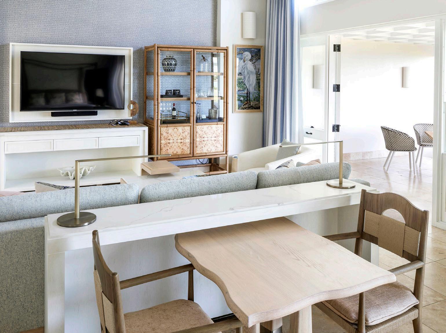 The private island of Jumby Bay is found off the Northwest coast of Antigua and is only accessible by ferry or private watercraft. Studio IDC has been active in the interior design and turn-key procurement of this luxury island retreat for over 25 years. Of the 56 privately owned island properties, Studio IDC has had the honor of developing interiors for 14 (25%), many of whom have returned over the years for renovations. In 2012, Studio IDC executed the design of the resort and new Pond Bay Villas for the then operators, Rosewood. When Pond Bay required transformation in 2019 for the new operators, Oetker Collection, Studio IDC was tapped again for rebranding and renewal of these spaces. Recently completed in 2024, with the resort, are the newly developed Veranda Bar & Dining along and Sand Bar F&B outlets.