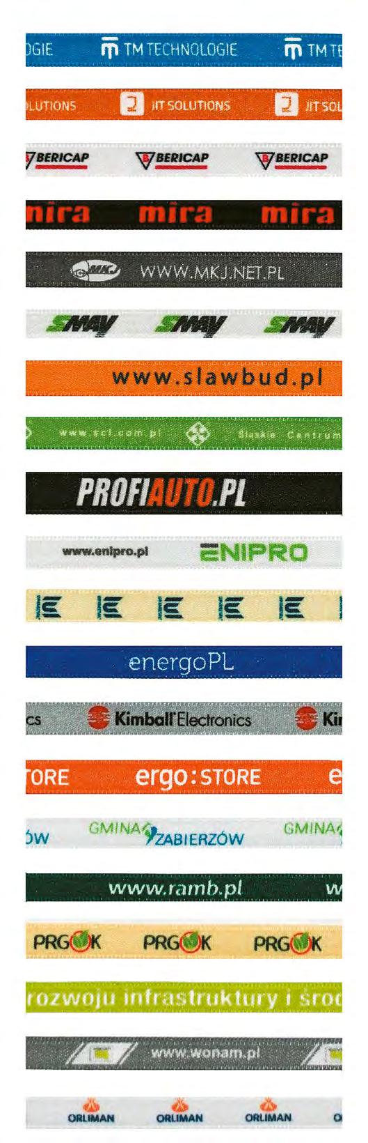 Tasiemka o szerokości 8 mm zadrukowywana jednostronnie lub dwustronnie. Można również zamówić tasiemkę w dowolnym kolorze bez nadruku.