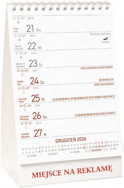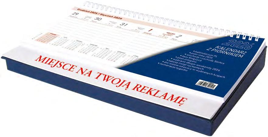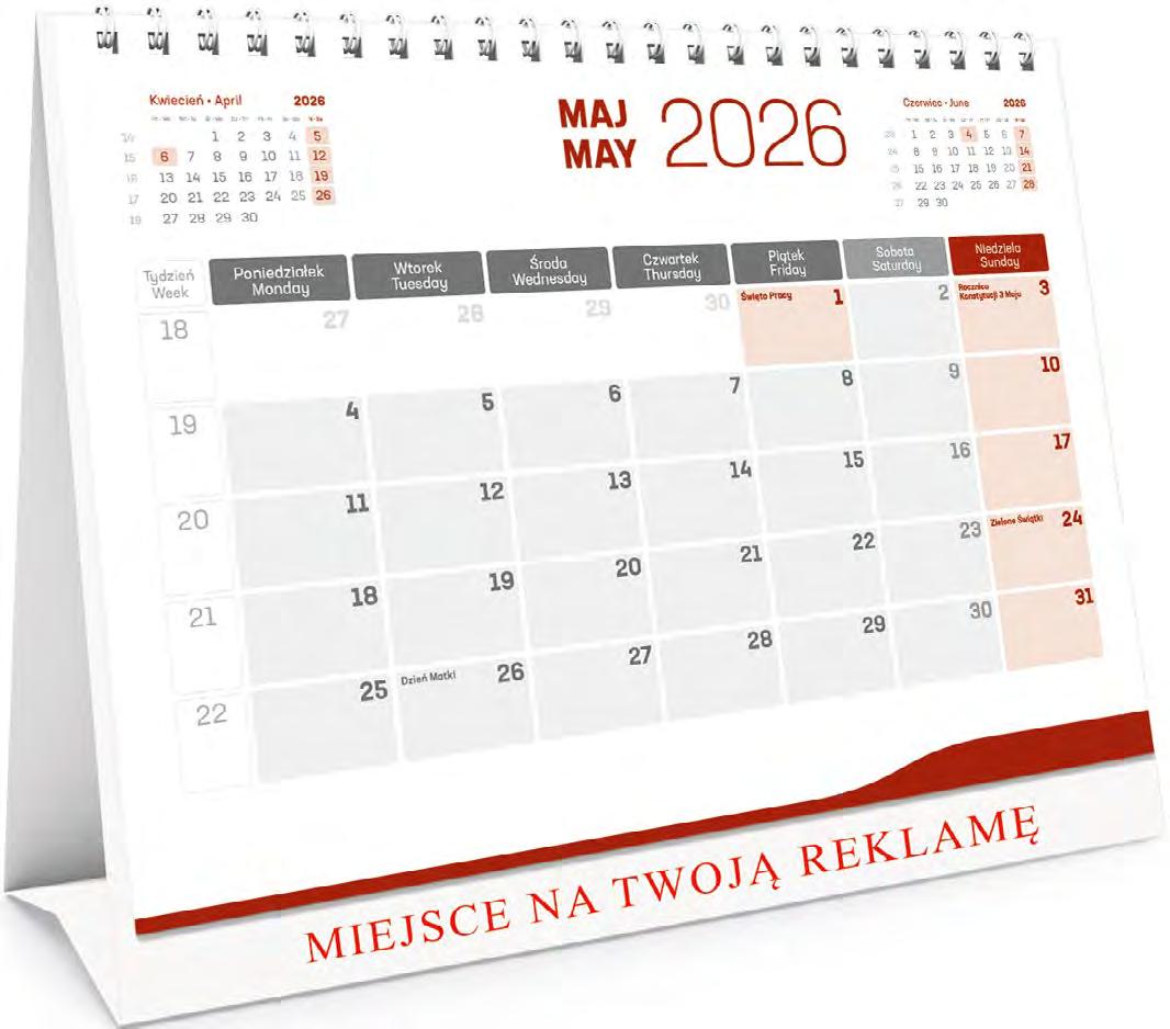 Kalendarze stały się nieodłącznym elementem identyfikacji wizualnej firmy. Dzieląc się kalendarzami z partnerami, kontrahentami i klientami dajemy znak chęci dalszej współpracy. Bogata oferta kalendarzy na 2026 rok pozwoli Państwu wybrać najlepszy i najlepiej wyglądający sposób komunikacji z odbiorcą.