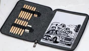 Zestaw piśmienny marki Mark Twain składający się z pióra wiecznego z nabojem, długopisu piszącego na czarno oraz pióra kulkowego piszącego na niebiesko. Całość umieszczona w gustownym etui.