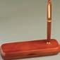 Przekręcany długopis bambusowy, z niebieskim wkładem. Pakowany w dopasowane, bambusowe etui.