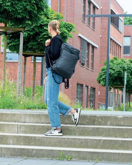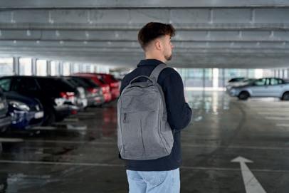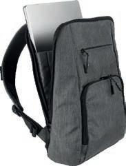 Lekki i kompaktowy plecak wyposażony w dużą komorę główną z wyściełaną przegródką na laptopa, małą kieszonkę z przodu, zamykaną na zamek oraz dużą kieszeń z wieloma przegródkami (małą kieszonką, kieszonką z siatki, karabińczykiem oraz organizerem na długopisy i dokumenty). Pojemność: 15l.