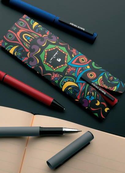 Zestaw piśmienniczy w modnych, intensywnych kolorach, składający się z długopisu oraz pióra kulkowego. Obydwa artykuły posiadają przyjemną w dotyku powierzchnię soft touch i czarne detale oraz funkcję touch pen. Długopis wyposażony w niebieski wkład (0,7 mm), a pióro kulkowe w niemiecki wkład Schneider piszący na niebiesko (0,5 mm). Całość zapakowana w eleganckie etui prezentowe z certyfikatem autentyczności Pierre Cardin.