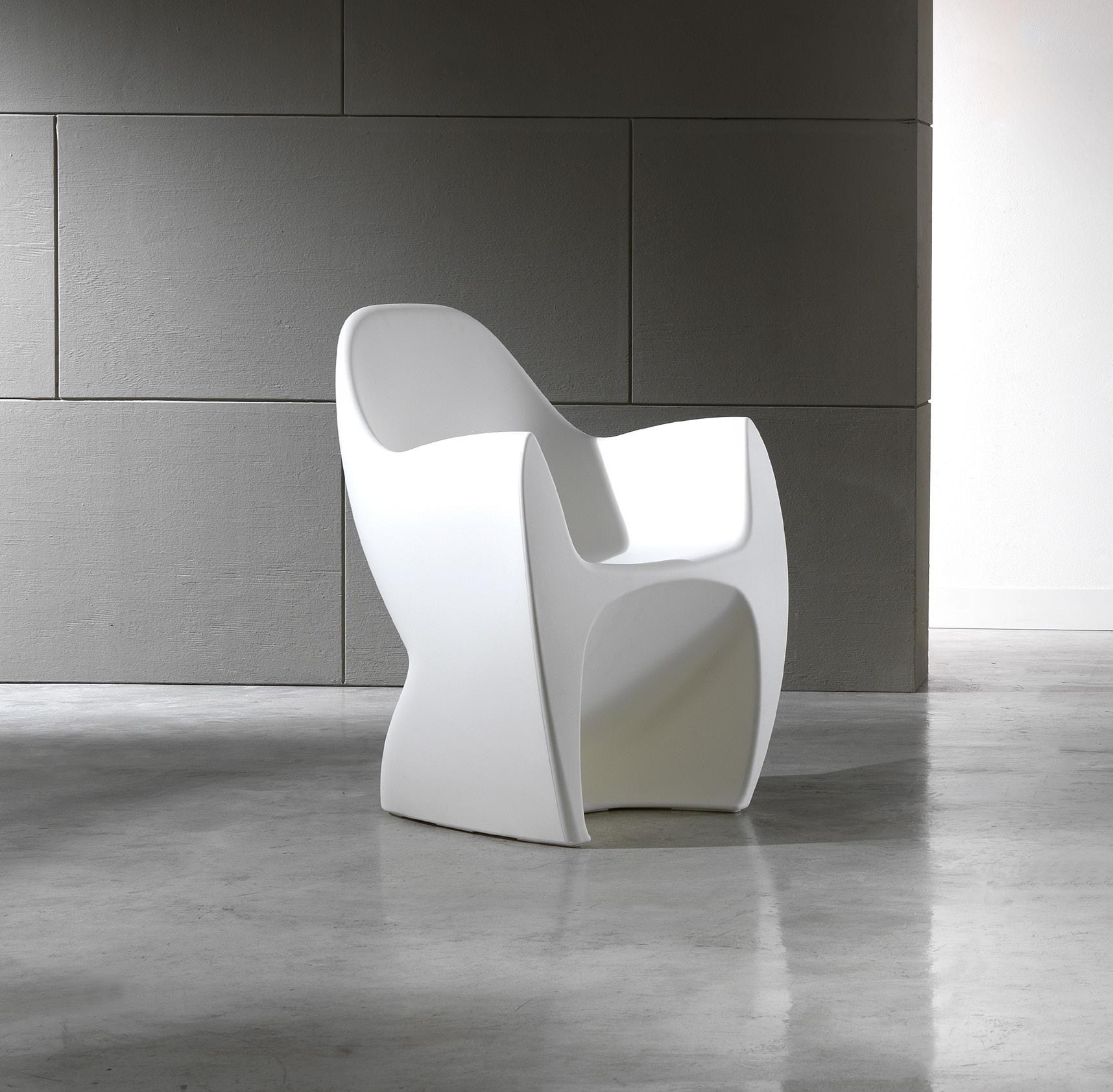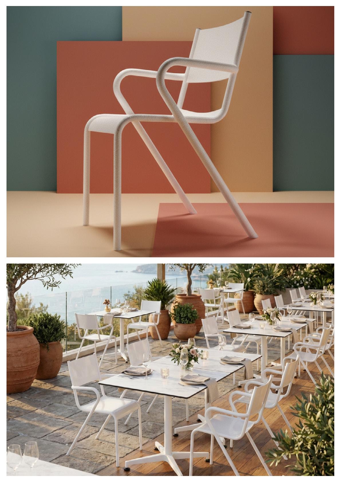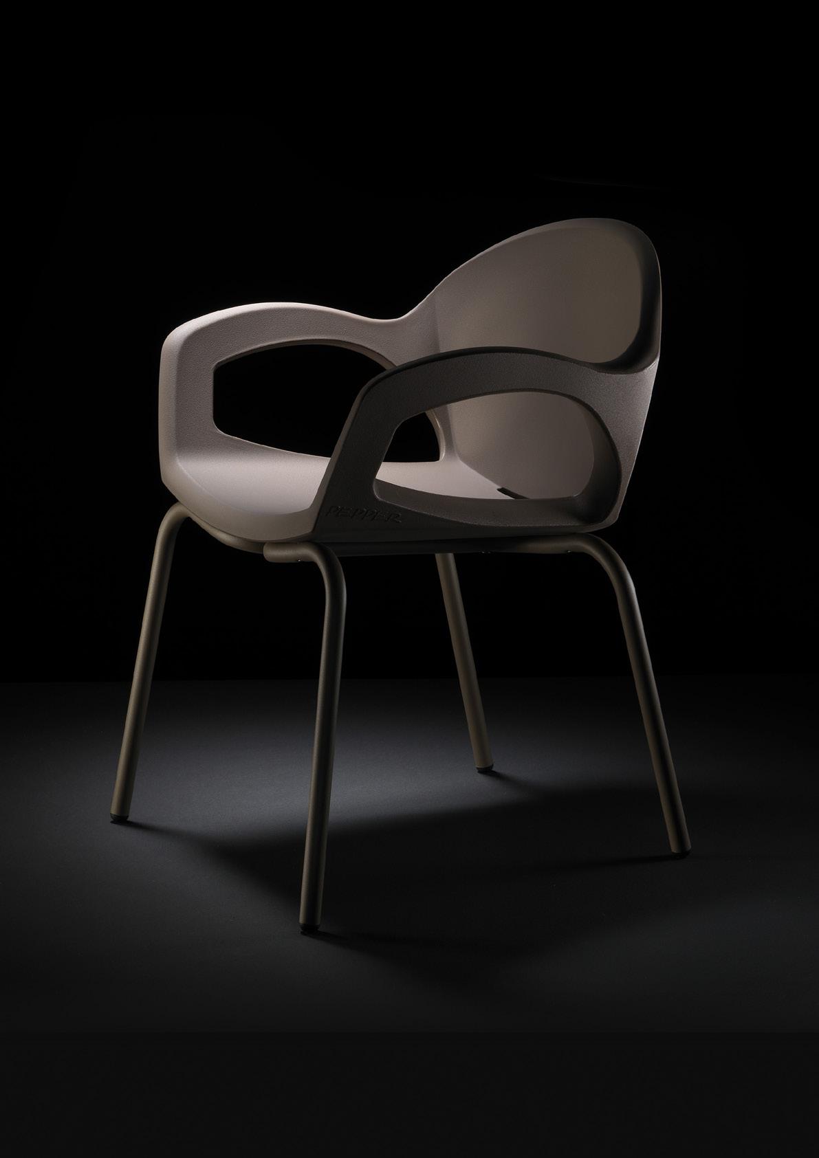 Pepper is a chair with an aluminum tube frame and a polyethylene shell available in white, black, cappuccino, and cement. Compact, expressive, and easy to maintain, perfect for outdoor spaces.