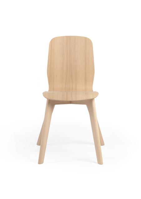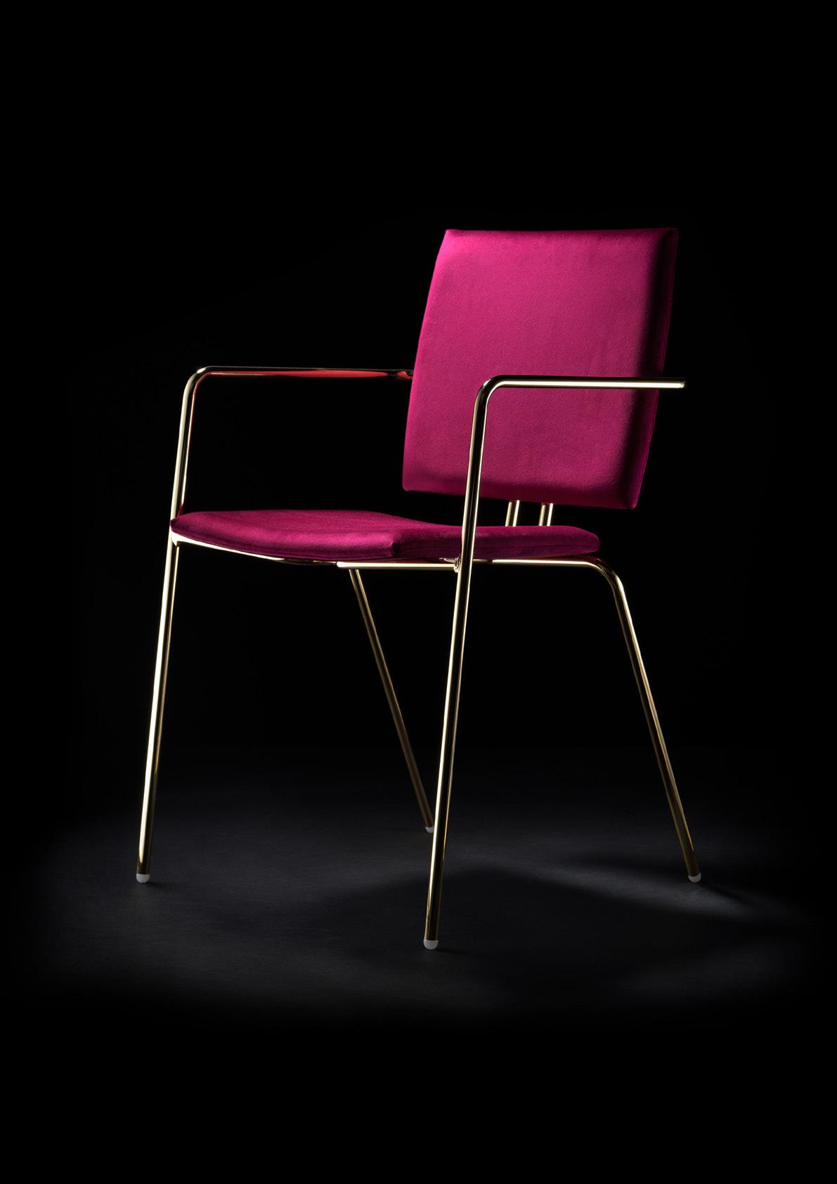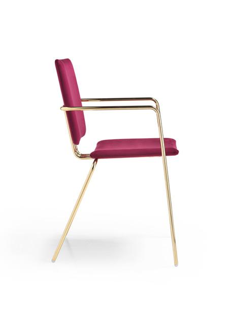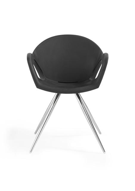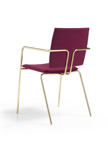 The Twin chair is born from the combination of twin seat and backrest, mounted on a steel frame that creates an elegant asymmetrical play at the back, providing lightness and visual rhythm.