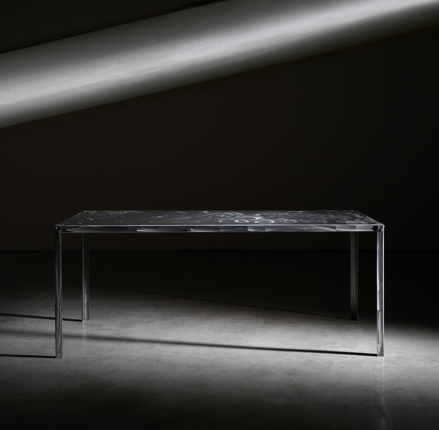 Il tavolo 500Q presenta la base 500q in finitura oro con il piano in gres porcellanato Onice Reale che con finitura lucida dona al tavolo un’estetica scenografica unita a resistenza e funzionalità.