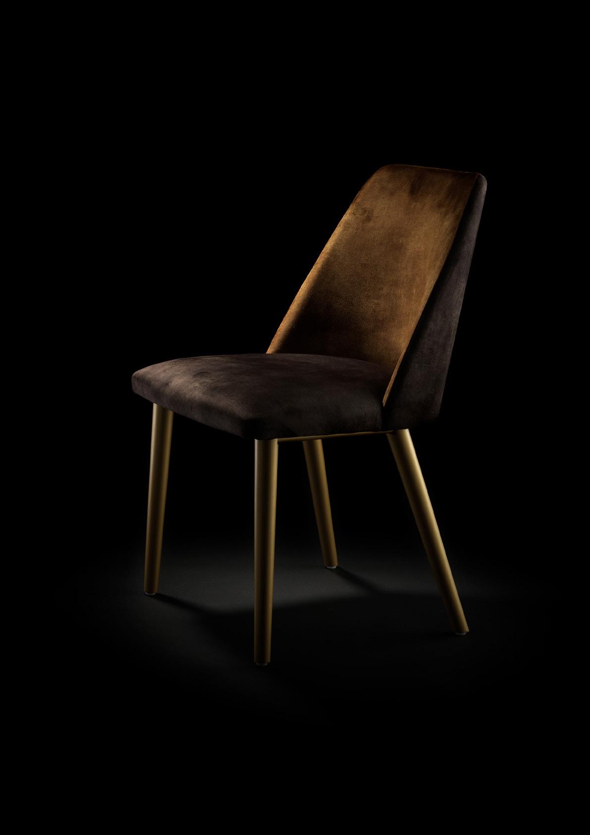 Madame è una sedia con telaio in legno di faggio e scocca in legno curvato, unisce comfort e rigore formale. I rivestimenti in velluto, ecopelle o tessuto la rendono adatta a spazi classici e contemporanei.