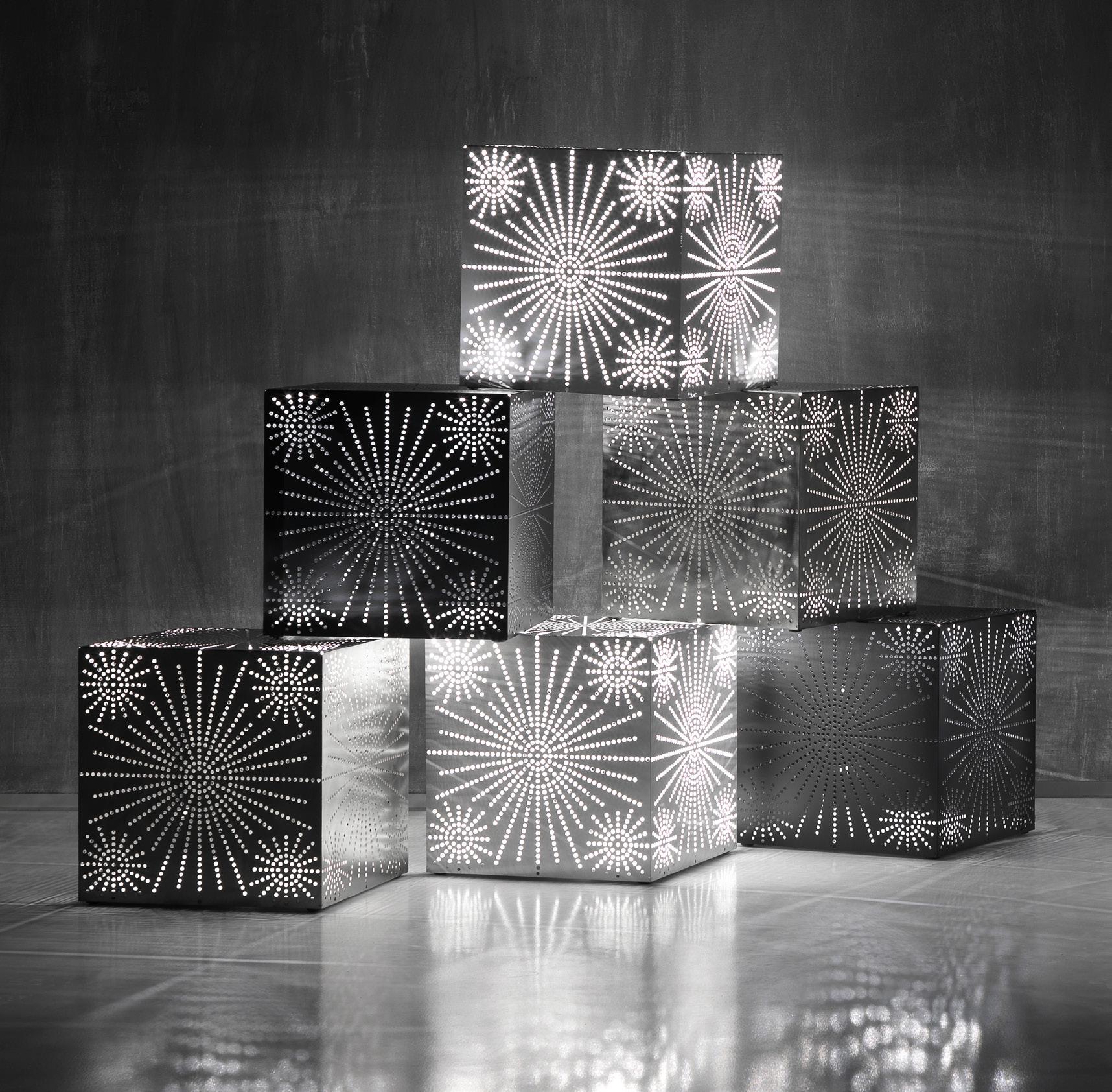 Il pouf Balù, caratterizzato da 3672 micro-fori ottenuti con tecnica a punzone, unisce eleganza e versatilità. Può essere utilizzato come pouf, tavolino o lampada, creando atmosfere originali e uniche.