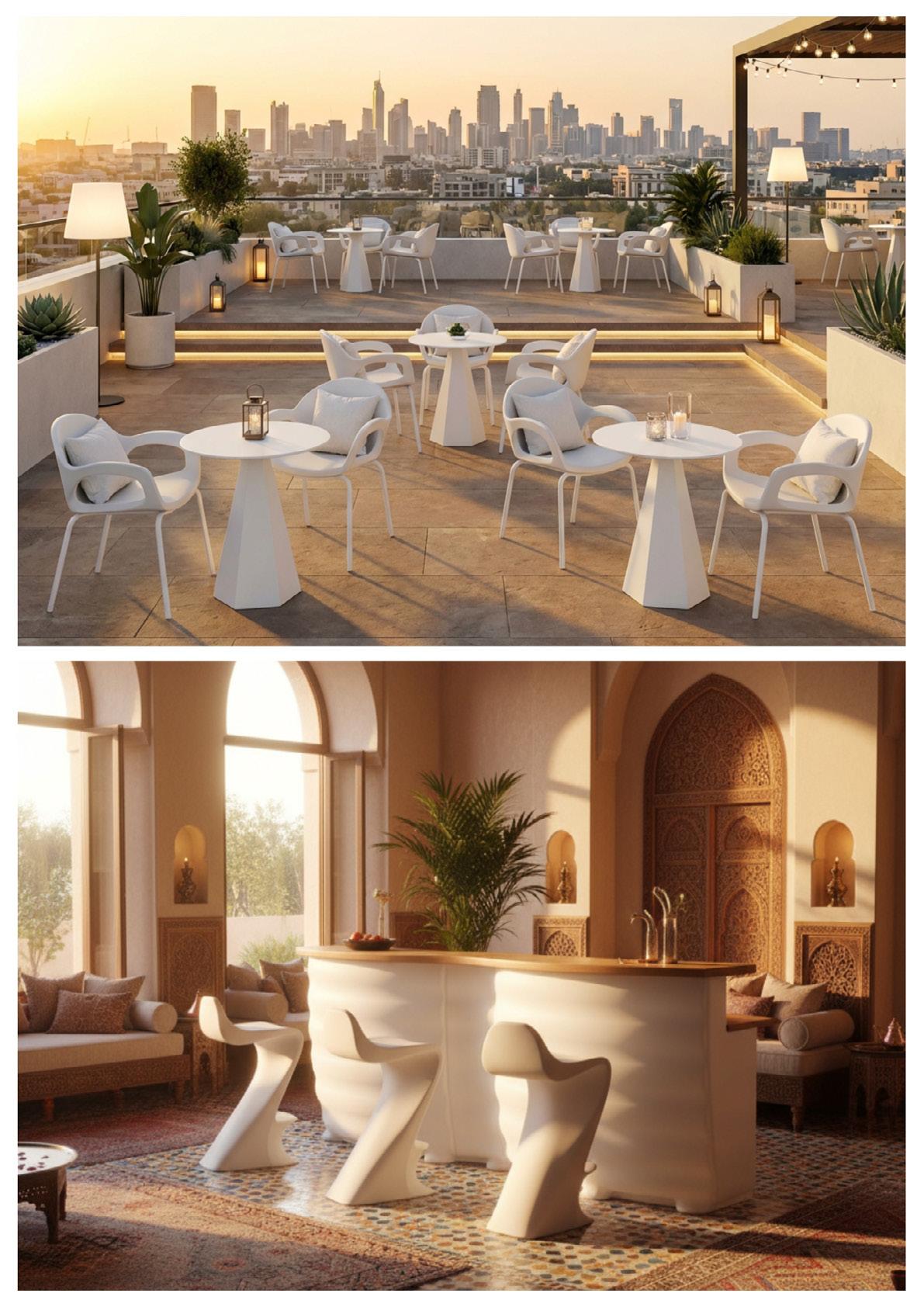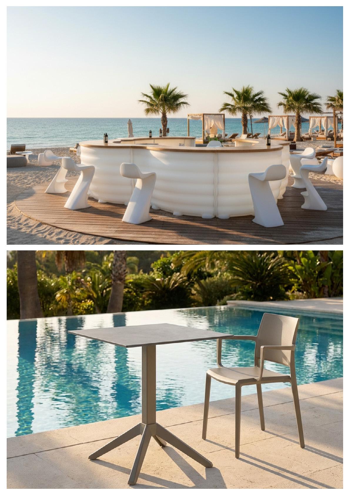 Made entirely of polyethylene, it is suitable for modern indoor and outdoor environments.