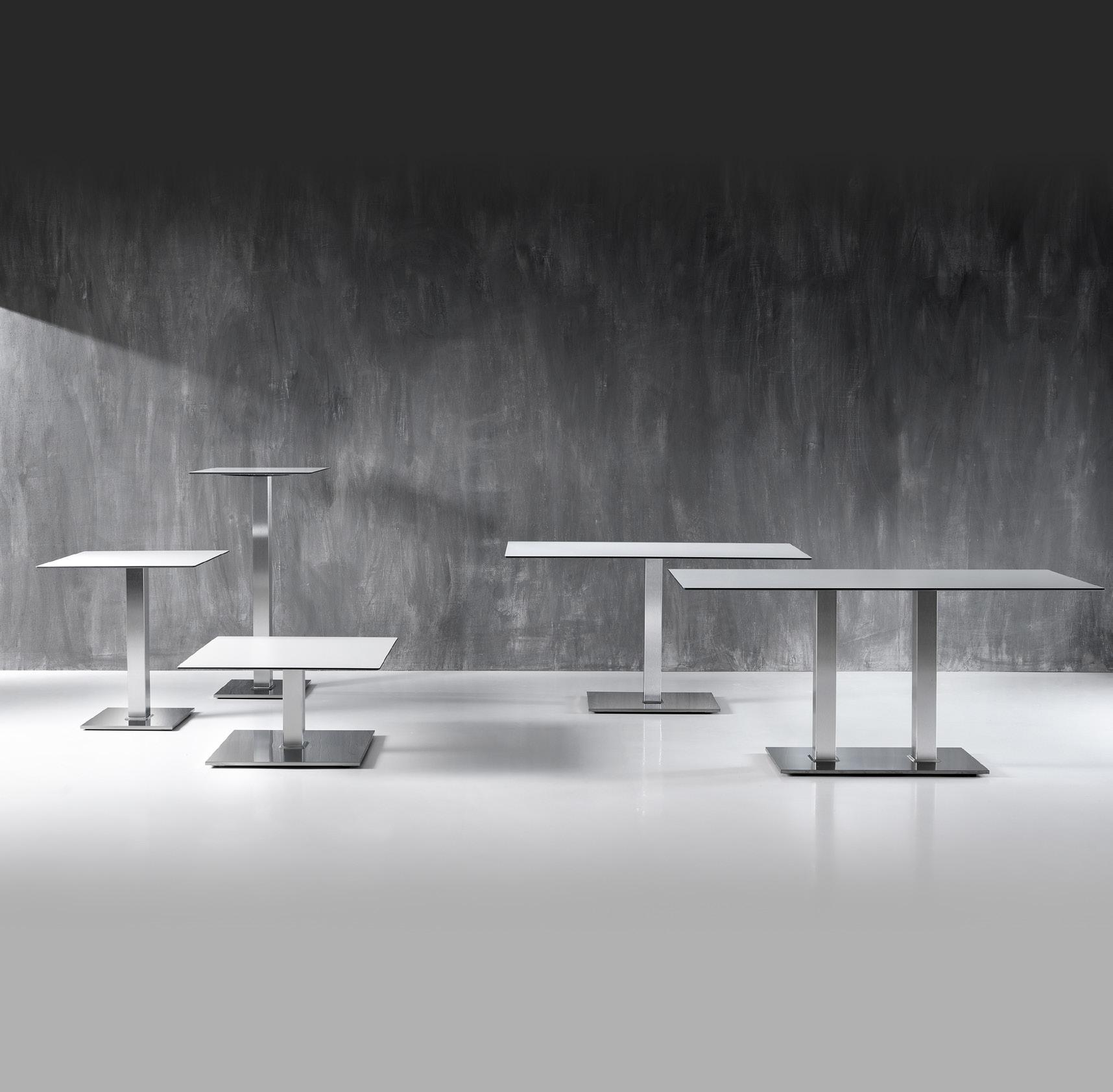 La collezione Slim, realizzata in acciaio, si distingue per le colonne sottili e i basamenti piatti, che conferiscono ai tavoli un aspetto slanciato, minimale ed elegante. È disponibile in diverse forme, dimensioni e finiture.