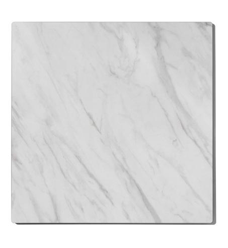 The Capitol table combines the Capitol base in glossy metallic silver with a square HPL Carrara Marble top. A durable and elegant pairing that enhances refined interiors.