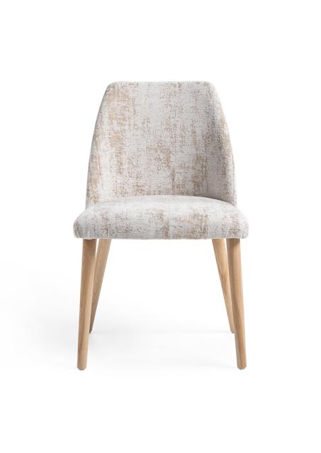 Madame with a beech wood frame and curved wooden shell, combines comfort with formal elegance. Upholstery options in velvet, faux leather, or fabric make it suitable for both classic and contemporary spaces.