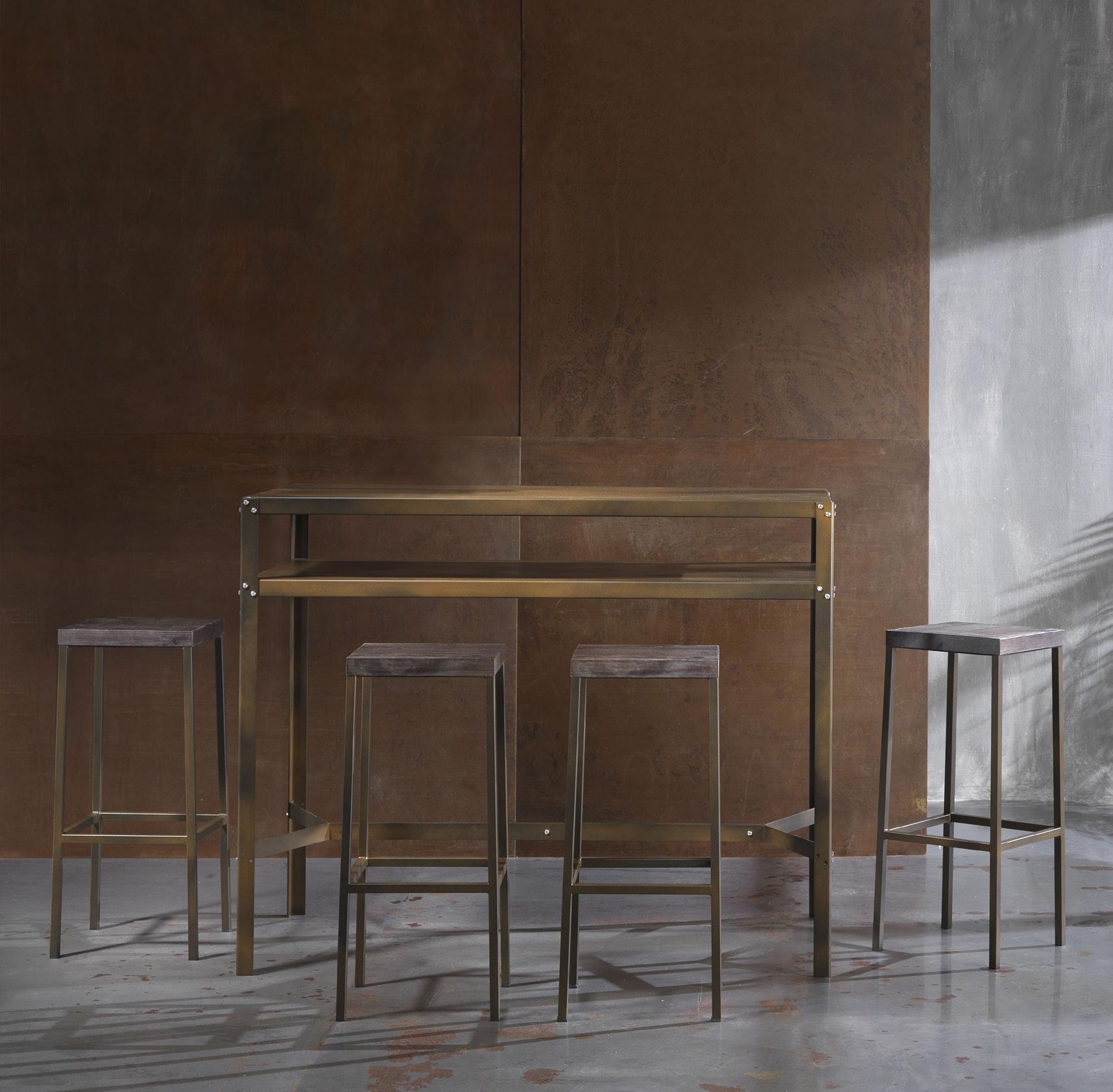 The Hope Plus High table, made of steel, combines strength with contemporary industrial style. Features L-profile legs, visible screws, and a durable top. Can be paired with the Shabby stool.