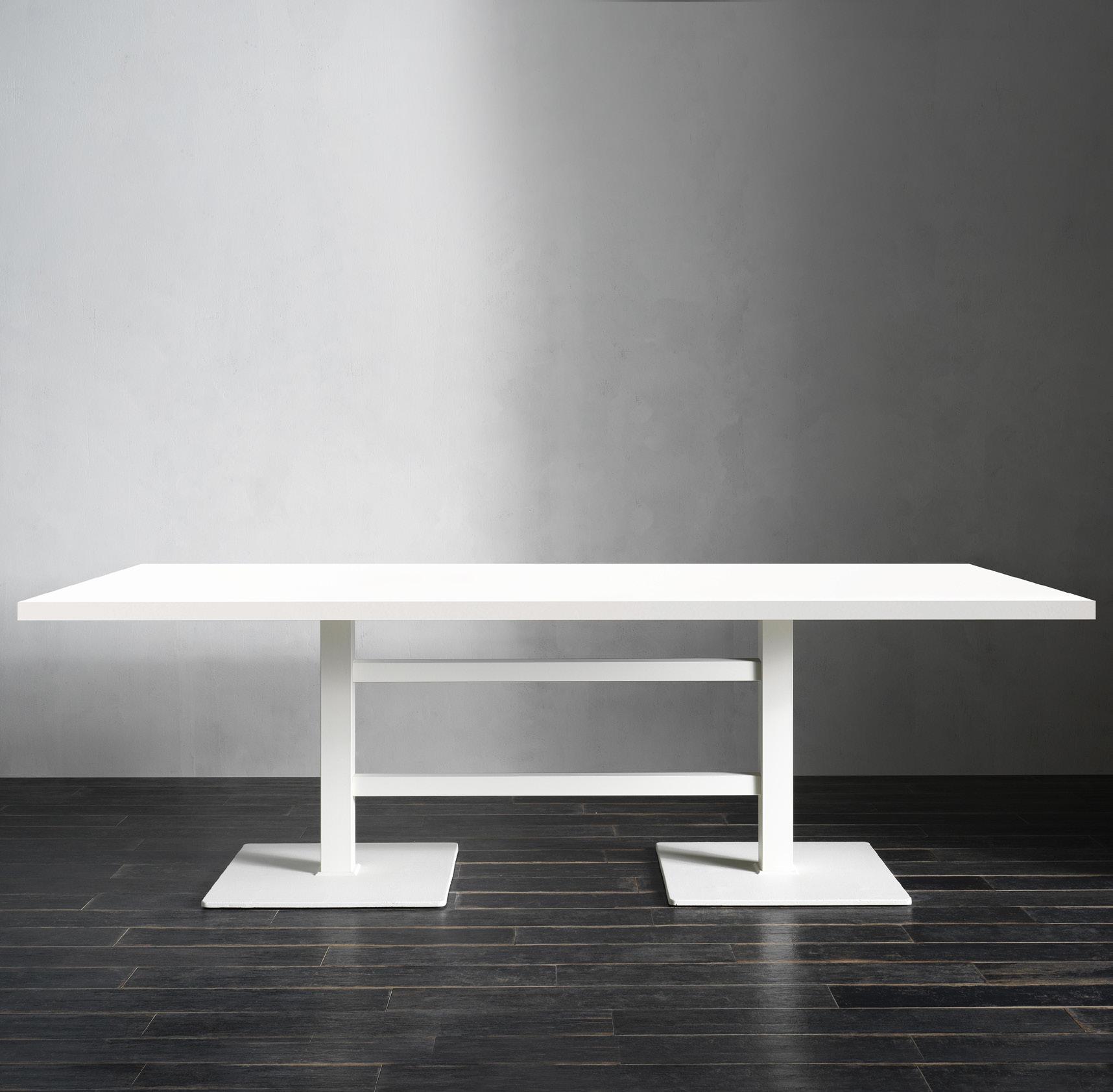 Il tavolo Hope è realizzato interamente in acciaio con viti a vista, gambe a profilo L, per un’estetica di ispirazione industriale. Zincato per l’uso indoor e outdoor, è disponibile in diverse misure, altezze e finiture.