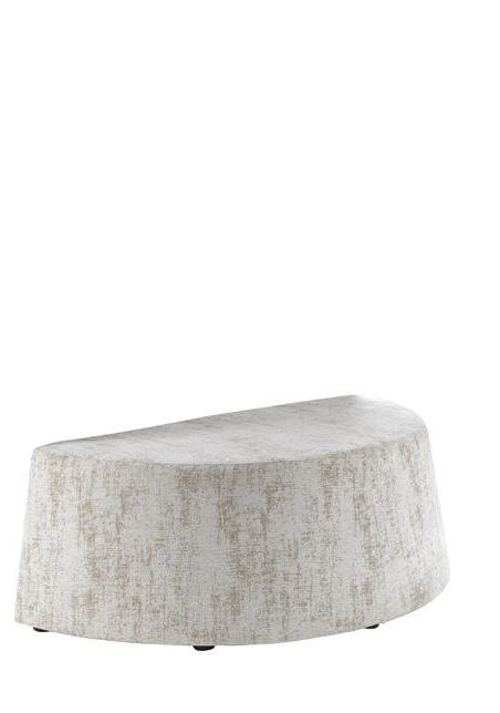Olli di Mezzo is the semicircular pouf with backrest from the Olli line, featuring a wooden structure and high-density foam padding. Upholstery options include fabric, velvet, and faux leather.