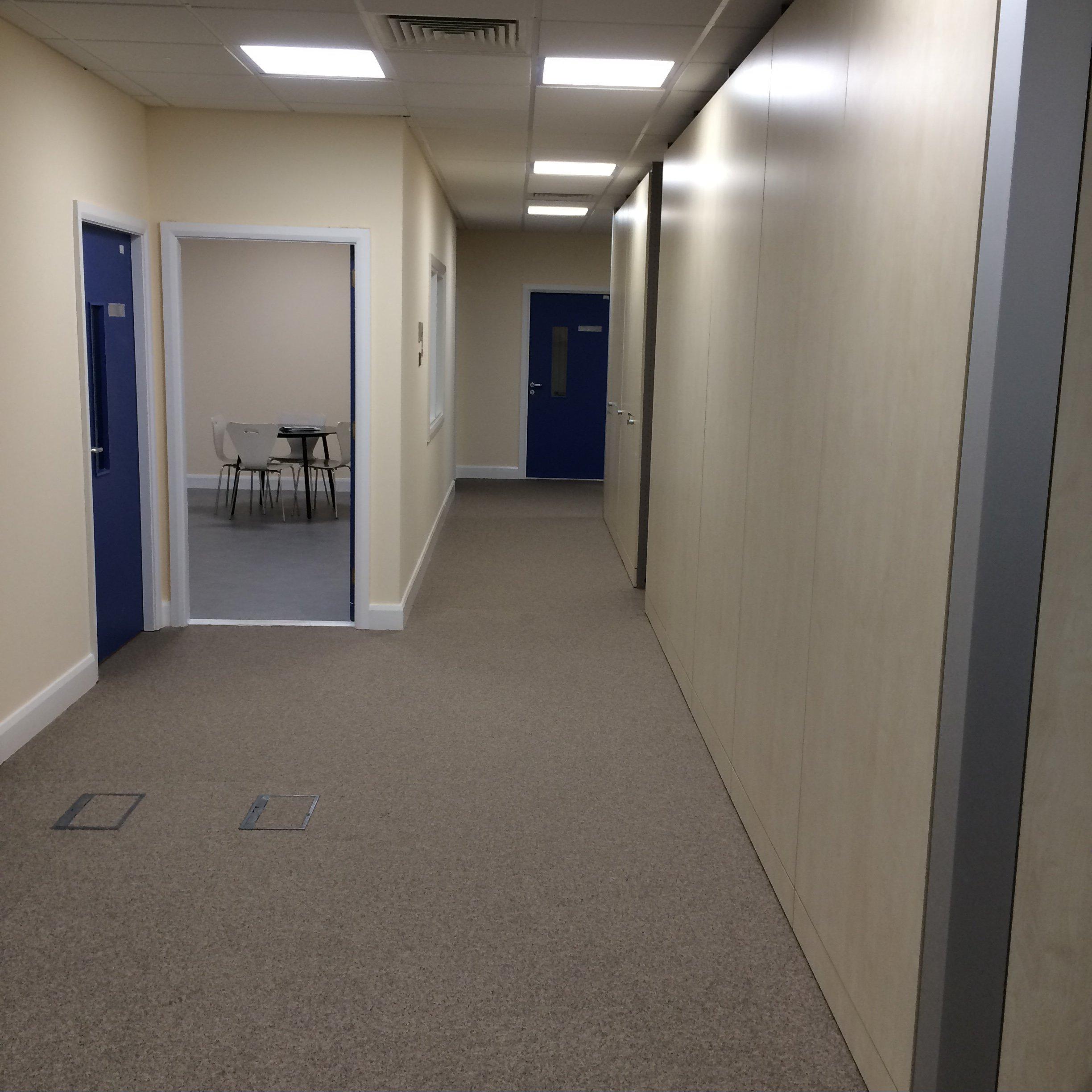 Doors within a Partition System can be matched to doors in concrete areas for an integrated finish throughout.