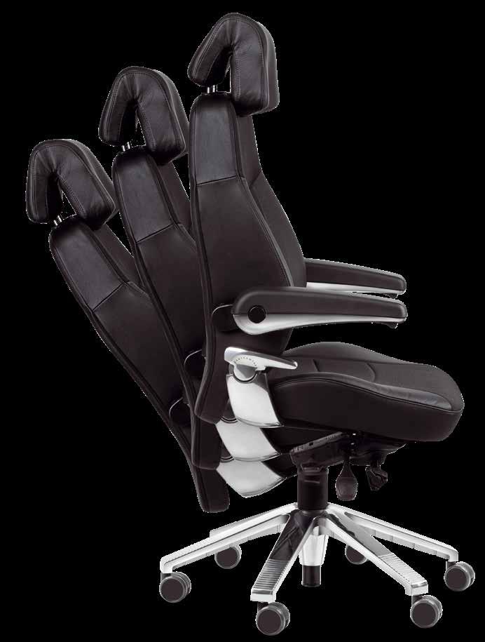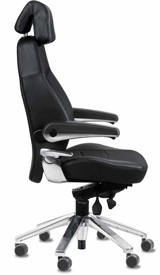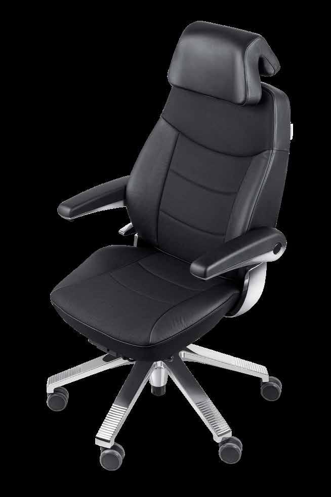 Svenstol ® S6 in black leather with comfort Headrest and tip-up armrests.
