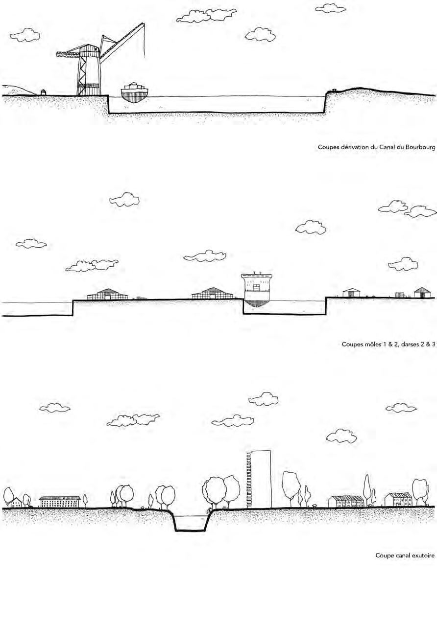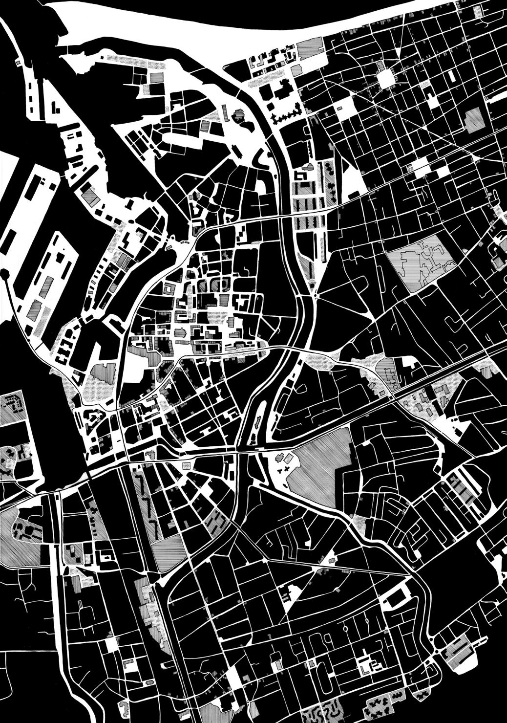Cartographie & analyse urbaine : Les étudiant.e.s sont amené.e.s à réaliser une analyse urbaine sur la ville étudiée. Les recherches visent à construire un savoir et à récolter un maximum d’informations sur le contexte afin de les filtrer, les interpréter, les traduire graphiquement, et utiliser leur analyse pour nourrir le projet. C’est un travail cartographique, entre autres, dont le résultat est également intégré à la publication finale. L’analyse tient compte de la part biologique et paysagère des villes, au travers notamment de la perméabilité et de la fertilité des sols, abordés dans leur épaisseur et en interaction avec le réseau hydrologique. L’histoire des sols est appréhendée dans la complexité des transformations infrastructurelles qu’ils ont subies.