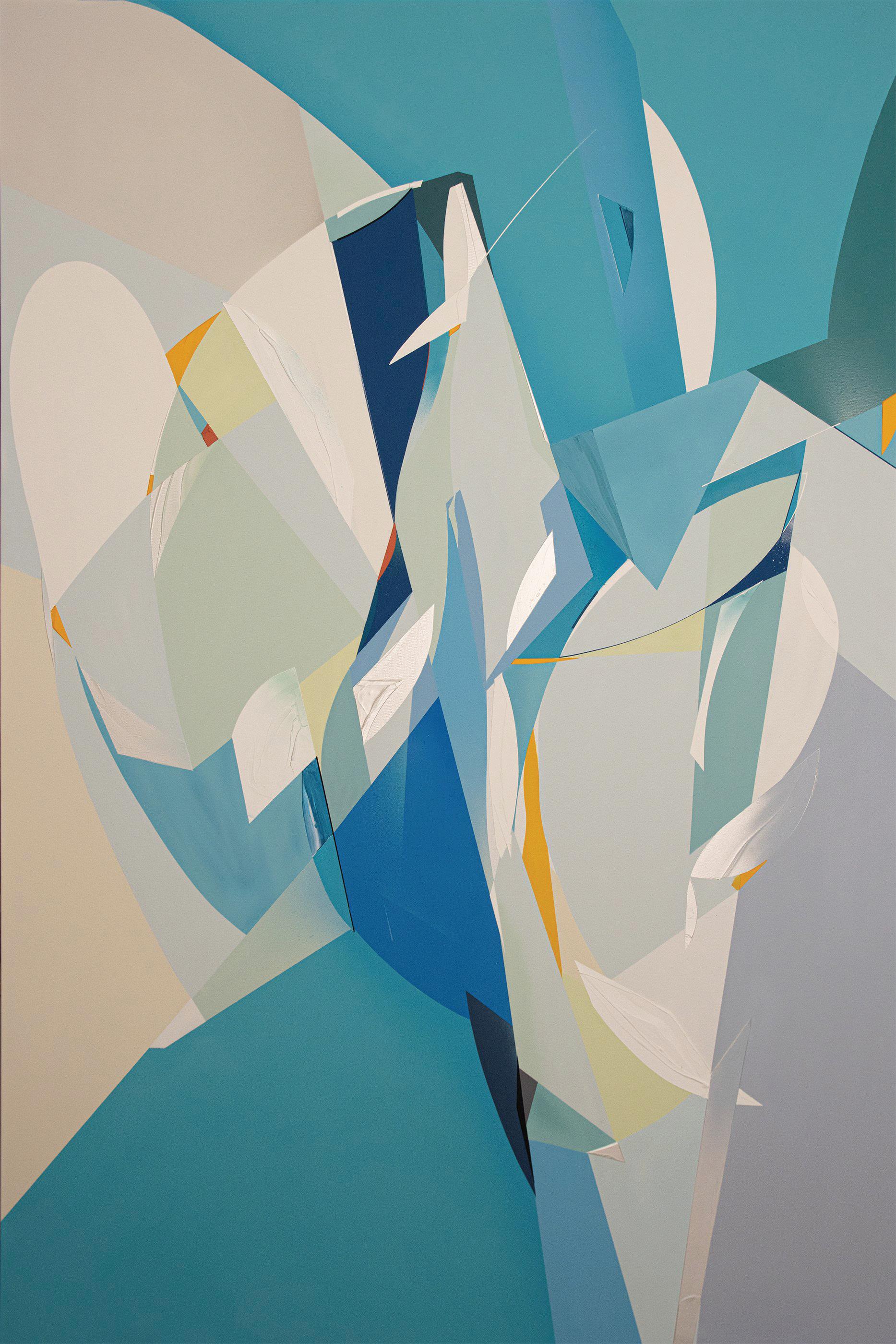 At the heart of Ortiz’s work lies a rigorous exploration of essential form. Shapes become signals; arrangements become rhythms. Each composition is carefully orchestrated yet alive with emotional undercurrents and conceptual tension. This deliberate balance allows him to fuse the gestural force of abstract expressionism with a quiet, introspective intensity, rendering each piece a site of personal excavation as much as visual invention.