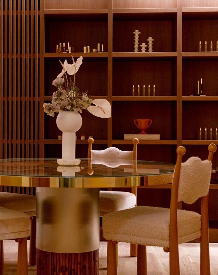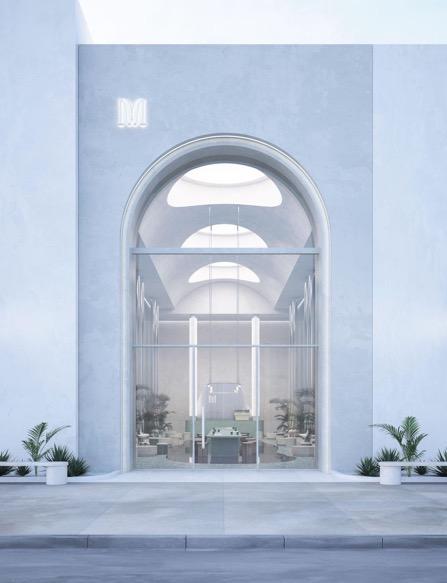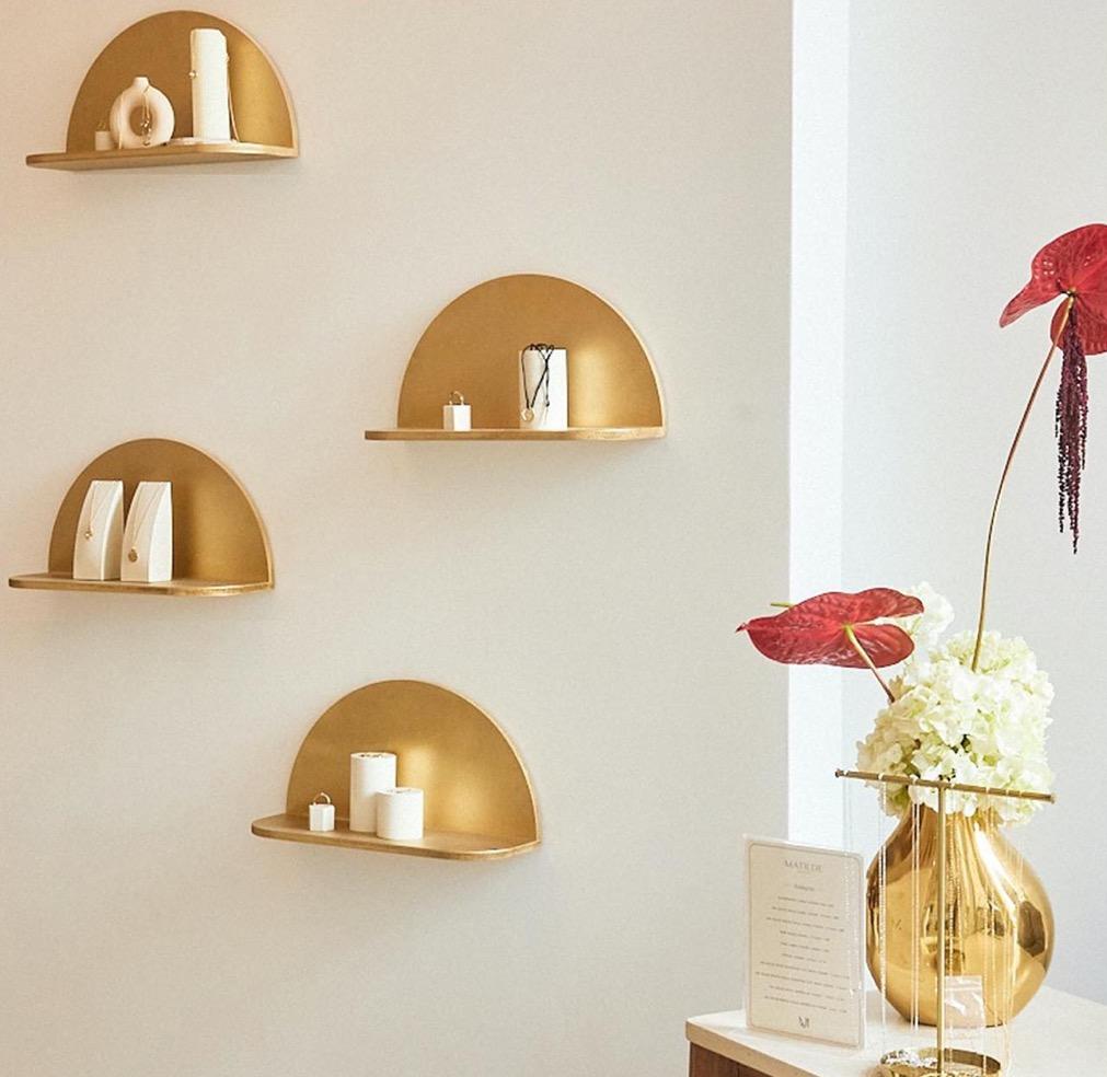We designed the store with inspiration for the brand codes, with highlights of gold, brass and neutral textures. We also designed a bespoke bike, for guests to have a cup of coffee in a Mathilde cup!