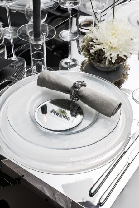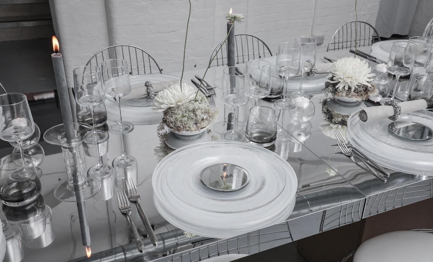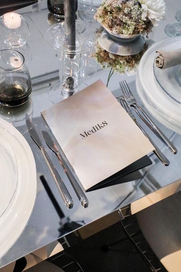 Medik8 asked us to create a VIP dinner experience for brand ambassadors. We designed a silver, iridescent tablescape filled with glass plates, grey tapered candles and used strip lighting that reflected off the table to create a mesmerising ambience in the room.