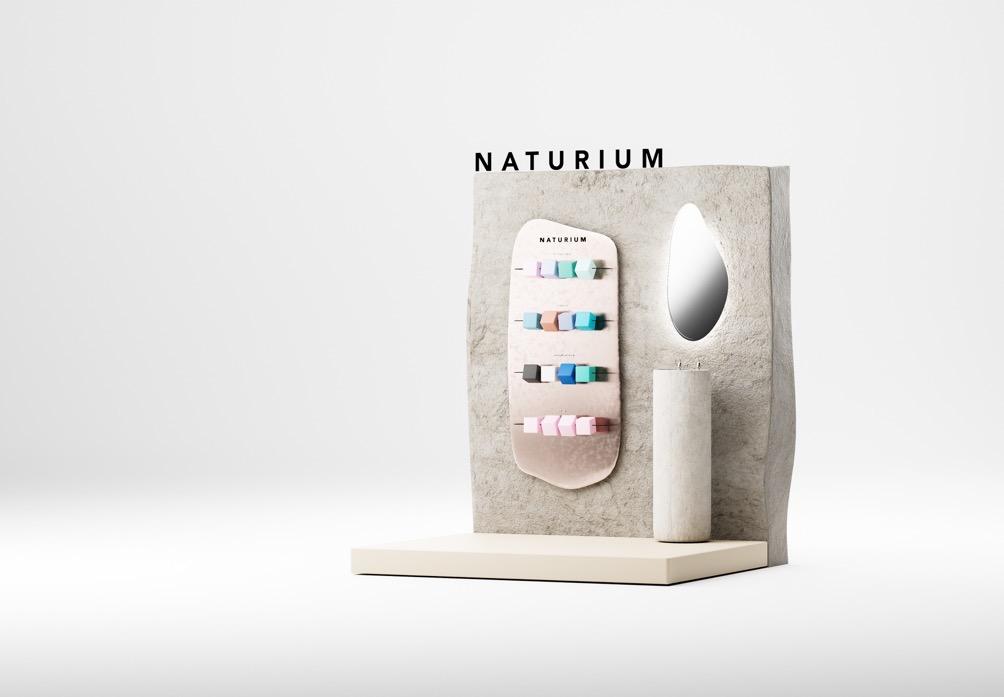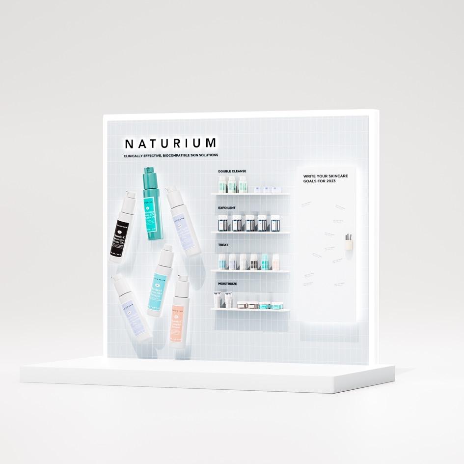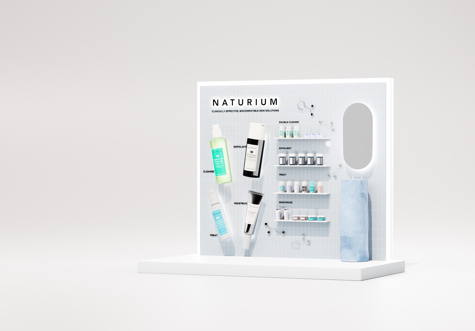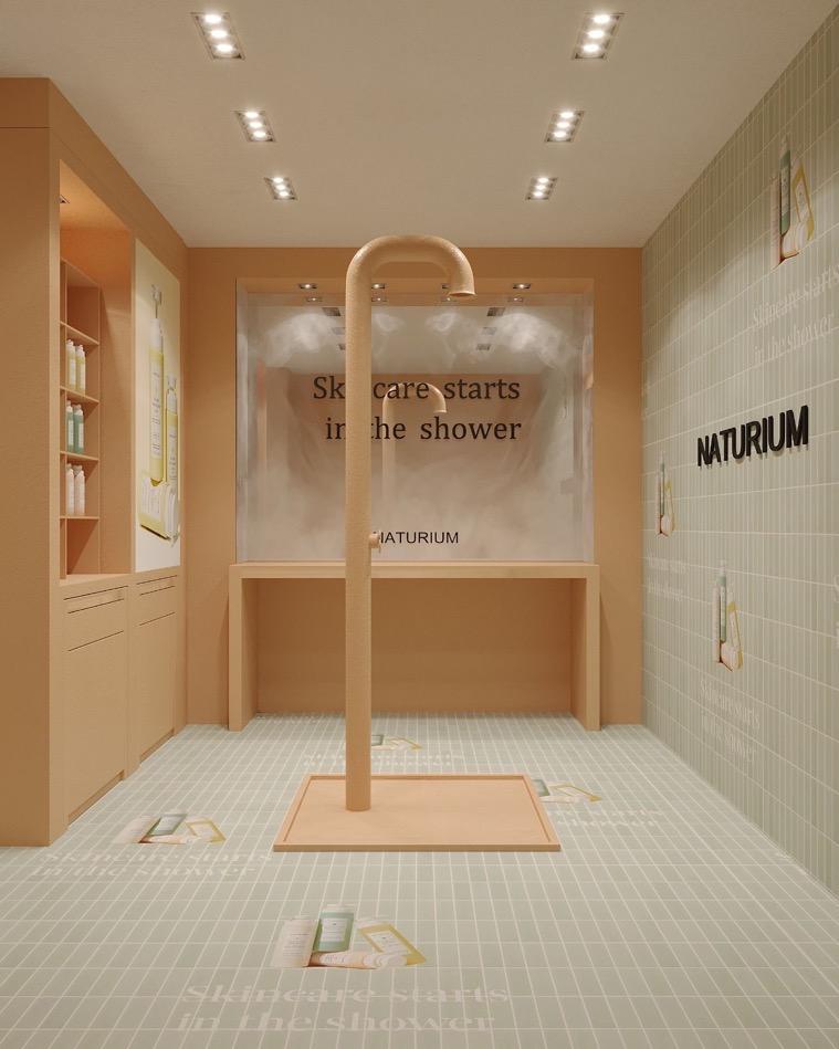 For the first design, we wanted it to feel as if someone is stepping into a chic bathroom, where they would build their own skincare routine, with the Naturium products.