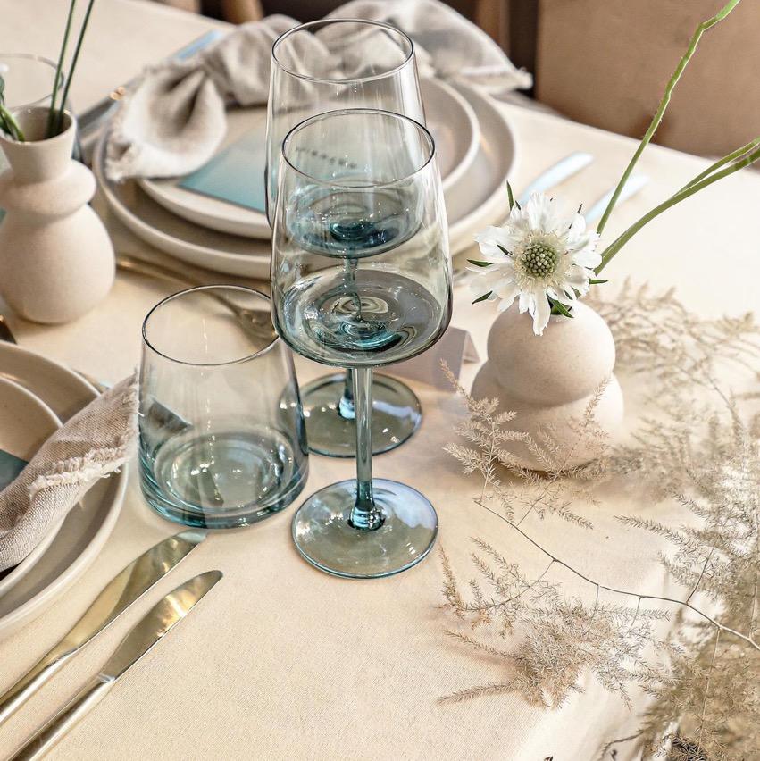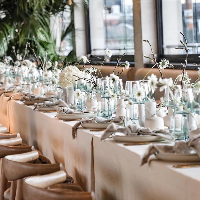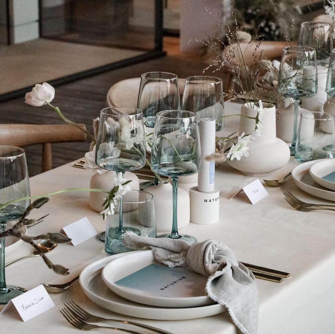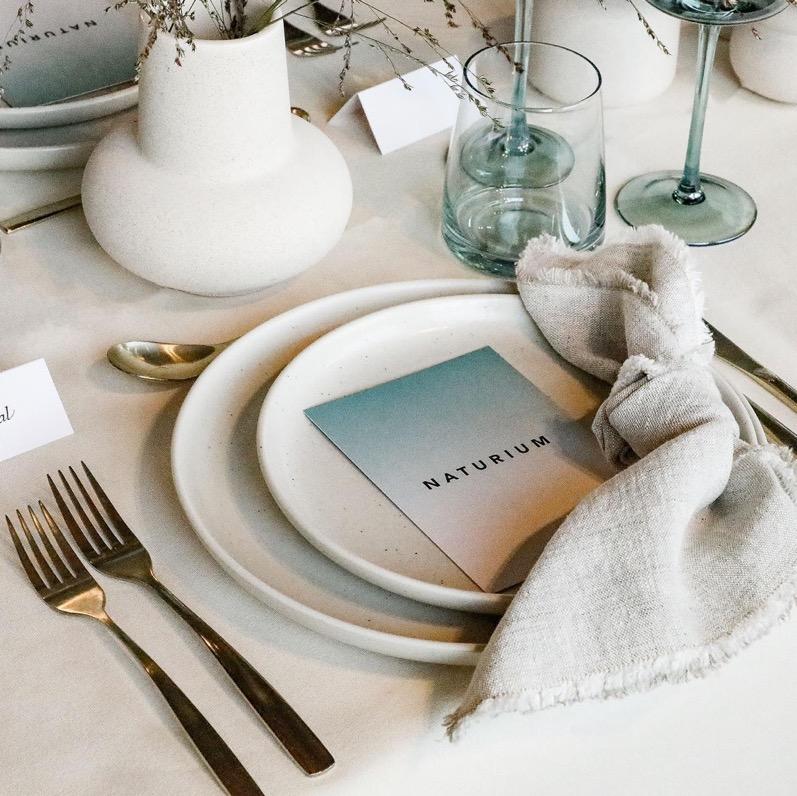 We created a minimal and clean table scape, featuring a stone texture to elevate to overall look.