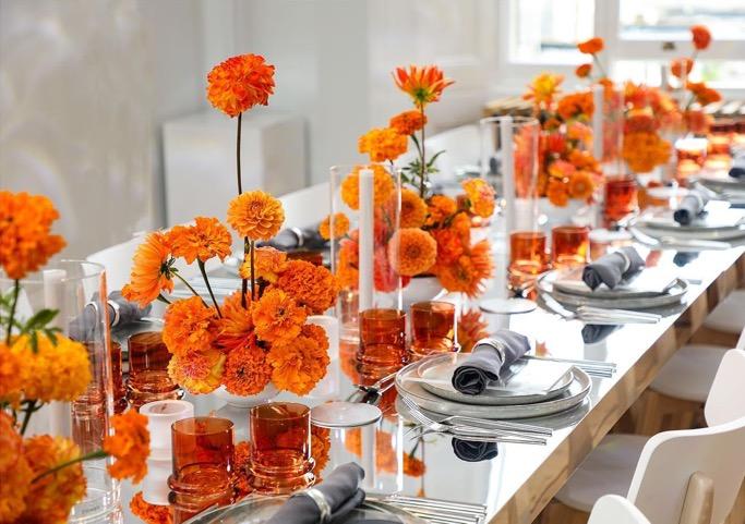 We created and produced a tablescape for Kate Somerville's VIP guests at the Rosewood Hotel in London. We transformed the room into a space that mirrored the brand’s signature colour scheme, with notable touches of orange. The design was finished with a neutraltoned floral runner that lay across the table and enchanted guests.