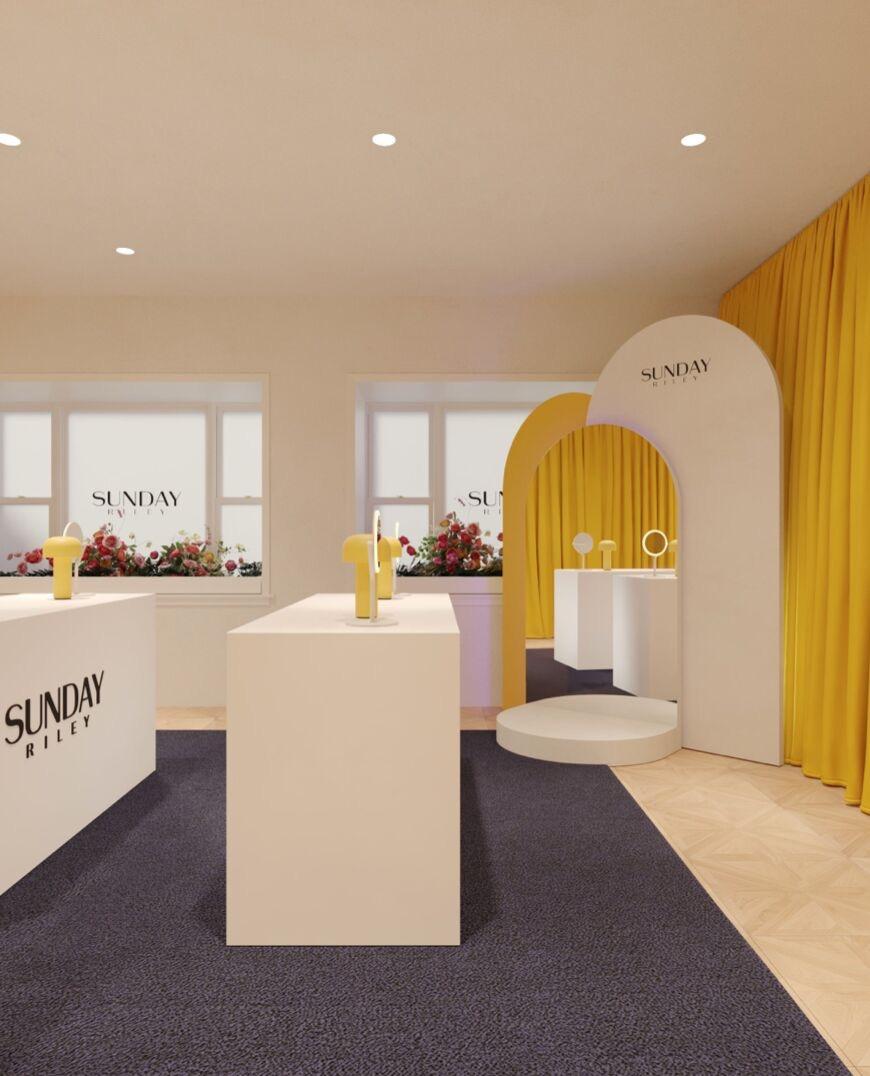 The last event took place, with Space NK, at their store in Hans Cresent, where we immersed Sunday Riley consumers into the dream skincare environment. We used bespoke draping, as well as product imagery around the room. We re-branded the stage, with a bespoke yellow carpet, and an ombre backdrop.
