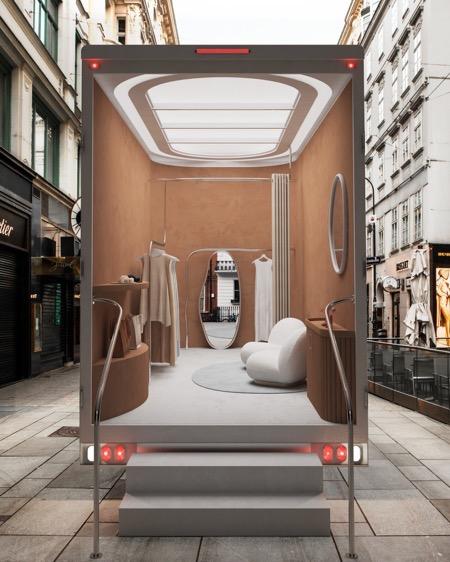 A compact space with immense opportunity. For this mobile showroom concept, Studio Mya plays on the juxtaposition between the mundane and the extraordinary, setting the everyday reality of an unassuming industrial vehicle against the modernity and luxury of the boutique inside.