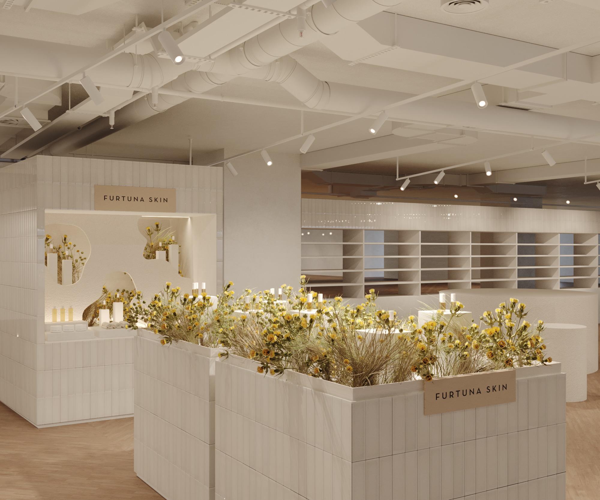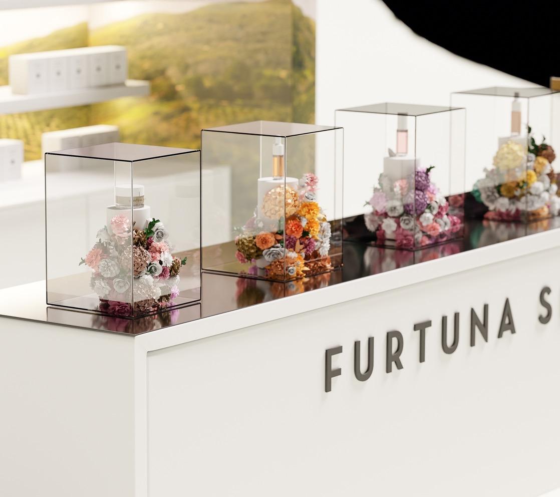 We have created and designed a popup concept for Furtuna Skin to launch in Galleries Lafayette in Paris. Our creation was inspired by the brand’s look and feel, complete with a mini field of flowers for an ethereal touch. PARIS,