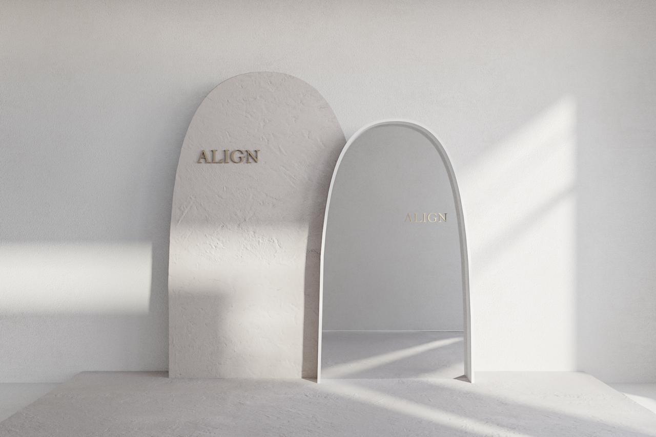 We played with a ridged texture for the backdrop, with a standing circular mirror perfect for content creation.
