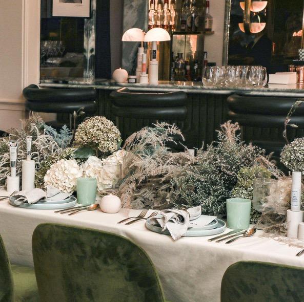 We designed a holiday-inspired tablescape for Cult Beauty's Christmas Campaign at the Maine restaurant, in the heart of Mayfair. The theme of the table was ‘Cult Rouge’ – a modern take on the traditional colour scheme that’s used during the festive season. A mix of pink and red roses and orchids decorated the tables, contrasting perfectly with the muted tones of the tableware.