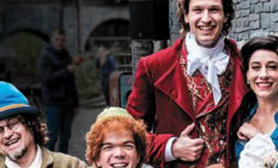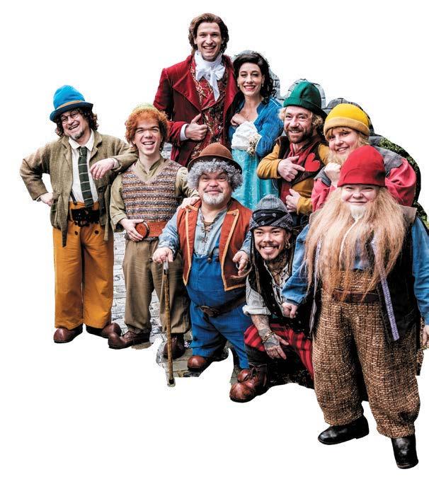 Terug naar het Studio 100 Theater in De Panne. In de coulissen klinkt geroezemoes. Make-up artiesten, haarstylisten en kostuumspecialisten leggen de laat ste hand aan de opvallende acteurs in de loges. Met zeven zijn ze. Sommigen zijn de hectiek al gewoon, voor anderen is het de eerste keer, maar alle zeven kleine mensen kijken uit naar wat hen te wachten staat: vandaag een persconferentie, deze zomer 48 optredens als de beste vrienden van Sneeuwwitje. Ze passen hun lange oorbellen, krullende pruiken, fluwelen broeken en schijn baar afgedragen bretellen. Ze keuvelen opge wekt over het ruige Belfast, die lastige risicoanalyses en dat mooie maar o zo verwarrende Vlaamse accent. Collega’s zijn het, maar nog liever luisteren ze naar de verwijzing vrienden.