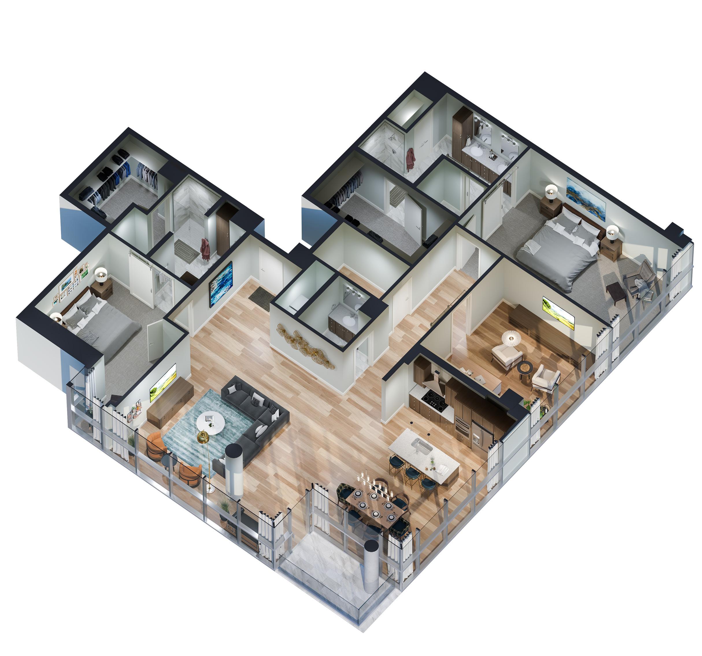 Our isometric 3D floorplans and spaces are meticulously designed to bring your vision to life with a clear, elevated perspective that highlights every detail. These dynamic, bird’s-eye views create an immersive experience, allowing you to showcase layouts, furniture arrangements, and finishes in a highly engaging way. Whether for residential, commercial, or mixed-use projects, our 3D floorplans offer an unparalleled tool to communicate design concepts with precision and impact. Perfect for presentations, marketing campaigns, and client reviews, these visualizations help your audience connect with the space, offering a captivating, easy-to-understand representation that elevates your project and enhances engagement.