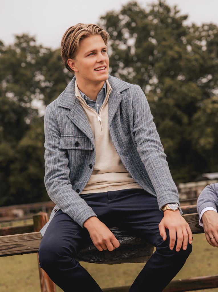 Dark navy en lichtblauw ontmoeten beige in een stijlvolle mix van koele klasse en warme elegantie. Deze tijdloze kleurencombi brengt verfijning en rust in elke moderne herengarderobe