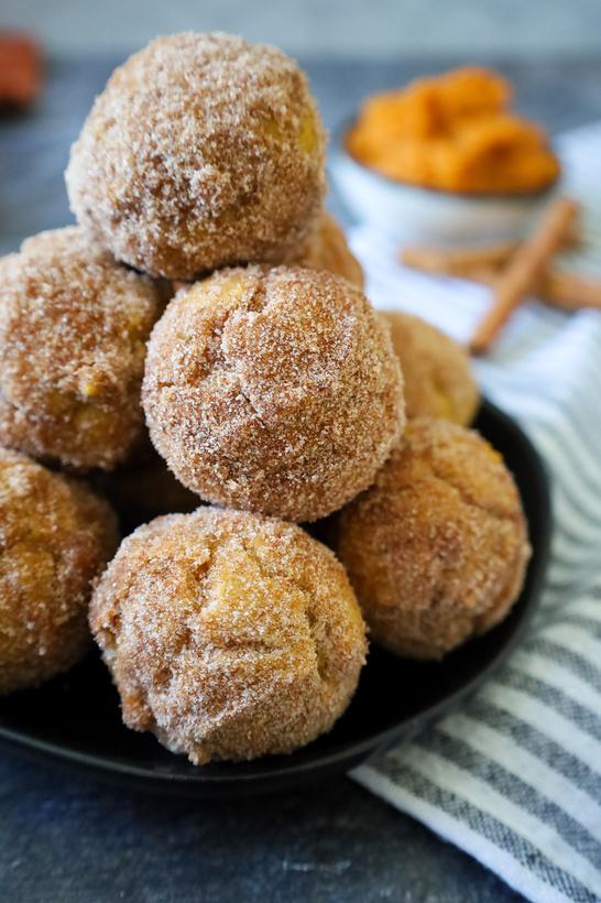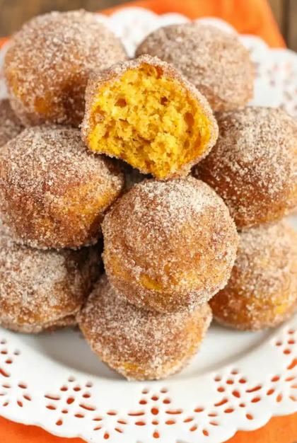 4.Placesugarandcinnamoninamediumbowl.Dipor brushthedoughnutholesonallsidesinthemelted butter,thenplaceinthebowlanduseyourhandsora spoontorollthedoughnutinthesugarmixturesoitis evenlycoated.Serveimmediately.Thesearebestwhen eatenthesameday.