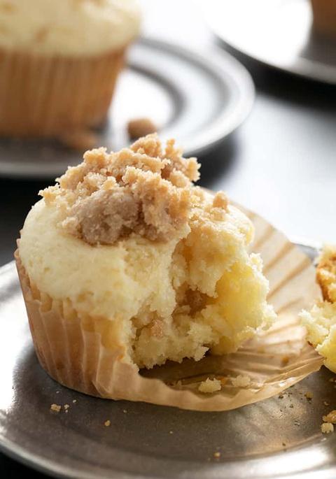 10.Dividethebatterevenlyamongthe12preparedmuffincups, andsmooththetopsofthebatterwithwetfingers.Scatterthe remainingcrumbleevenlyontopofallthewells;andpress gentlytohelpthecrumbleadheretothewetbatter.
